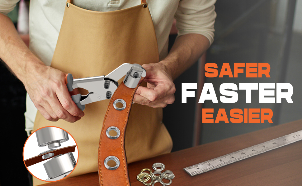 【أسرع وأكثر أمانًا، يمنع الإصابات】ابدأ على الفور. لا تتطلب أداة NEU MASTER Grommet ثقبًا مسبقًا بمطرقة، وثقوب تثبيت نهائية مباشرة. لا توجد إصابات في الأصابع! سوف تقضي وقتًا أقل بكثير في صنعها ووقتًا أطول بكثير في الاستمتاع بنتائجك الرائعة. تصميم مريح لسهولة اللكم وتقليل إجهاد اليد أو إجهاد المعصم، دون التسبب في التهاب اليدين أو البثور.