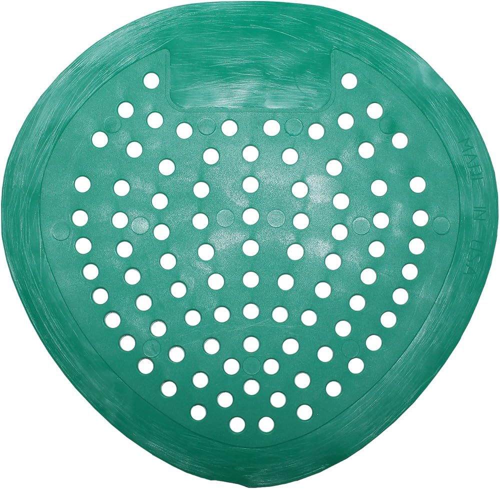 The urinal screen is a 12 Pack, green Apple fragrance. 100 percent vinyl remains flexible and contours to urinal shape - individually bagged. Protects drain from debris that can cause costly drain clogs.