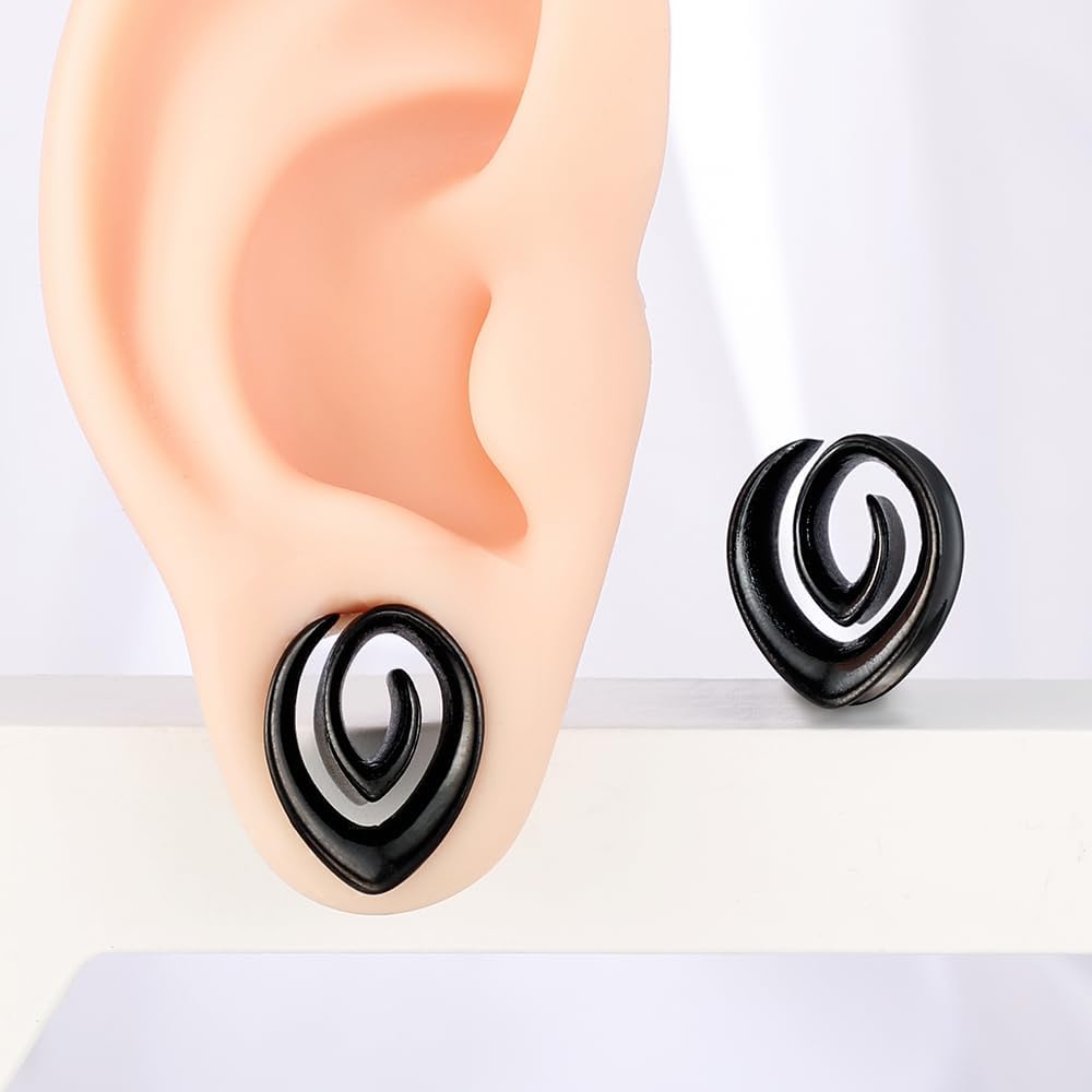 • Design: The dynamic beauty of spiral saddle gauges in black color, fashion plugs gauges for women, cool ear gauges for men, make yourself to be special guy.