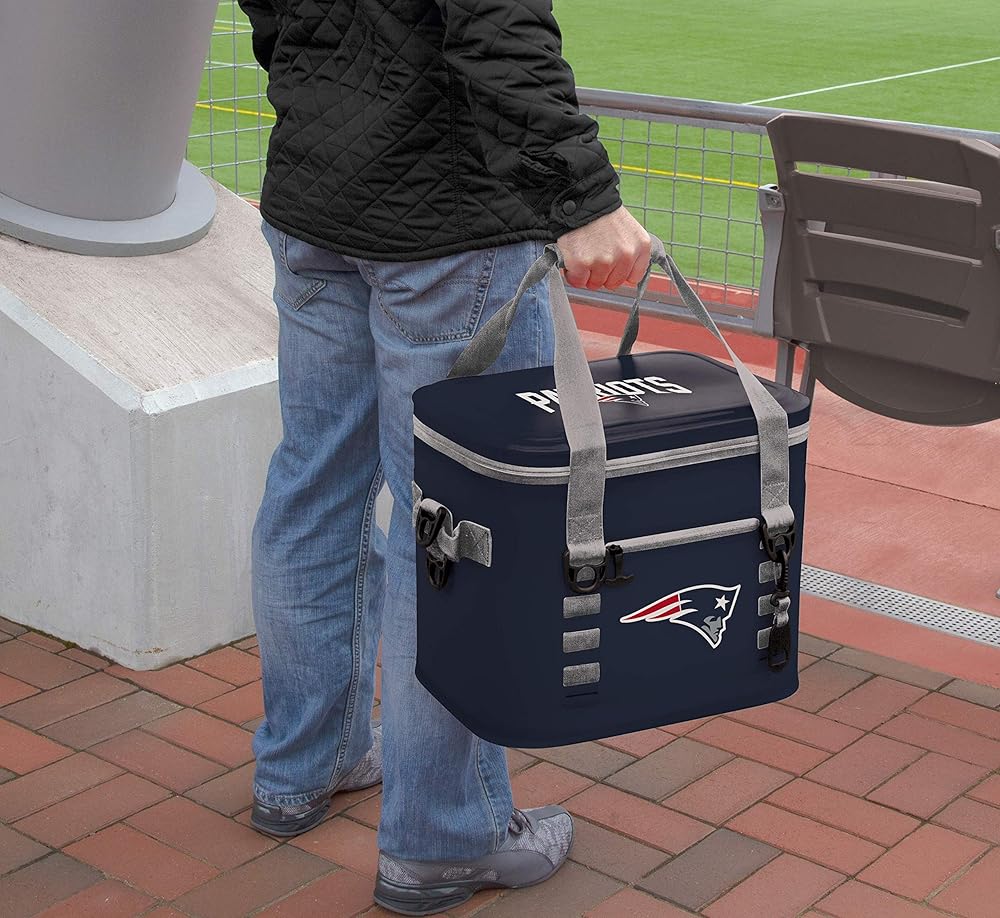 • يجب أن يكون لديك مبرد ملحوم معزول للغاية 30 علبة لأي مشجع نيو إنجلاند باتريوتس، ويتميز بشعارين وطنيين جريئين.