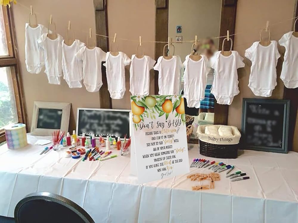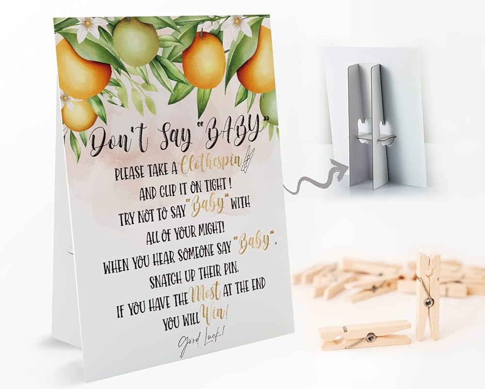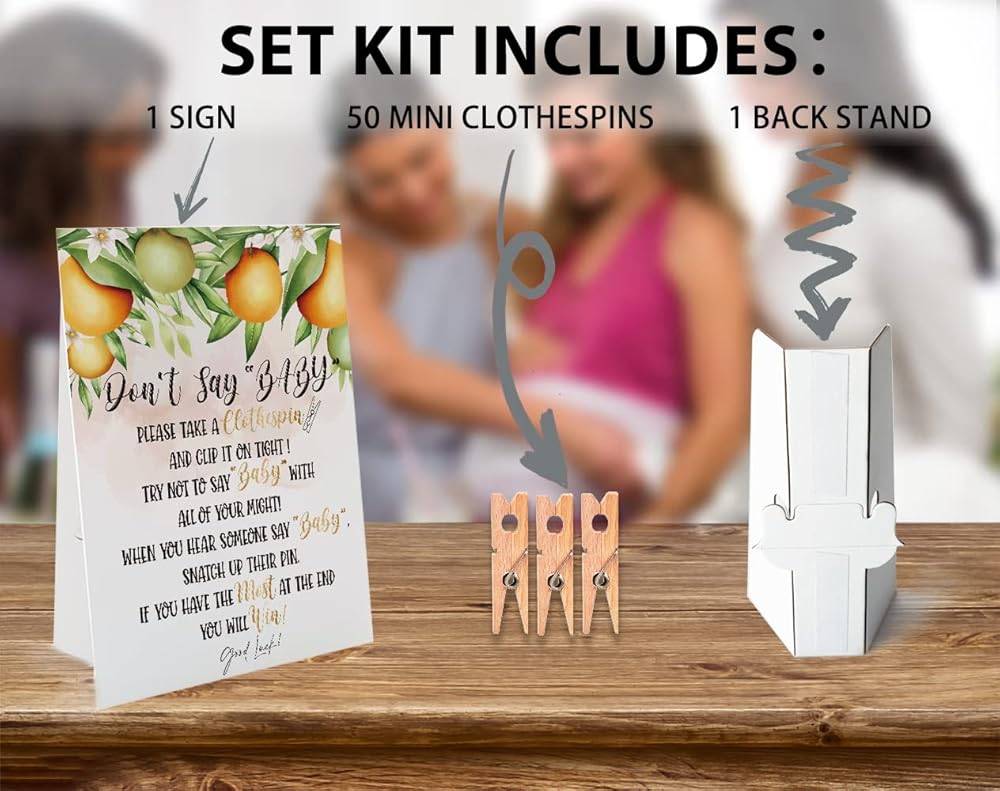 • There's a lot going on in planning a great baby shower: choosing the perfect theme, serving delicious food, ordering cute invitations, and of course, playing games! We designed this Don't Say Baby Game with 50 Mini Clothespins to be a must for your baby shower.