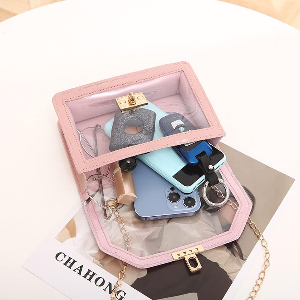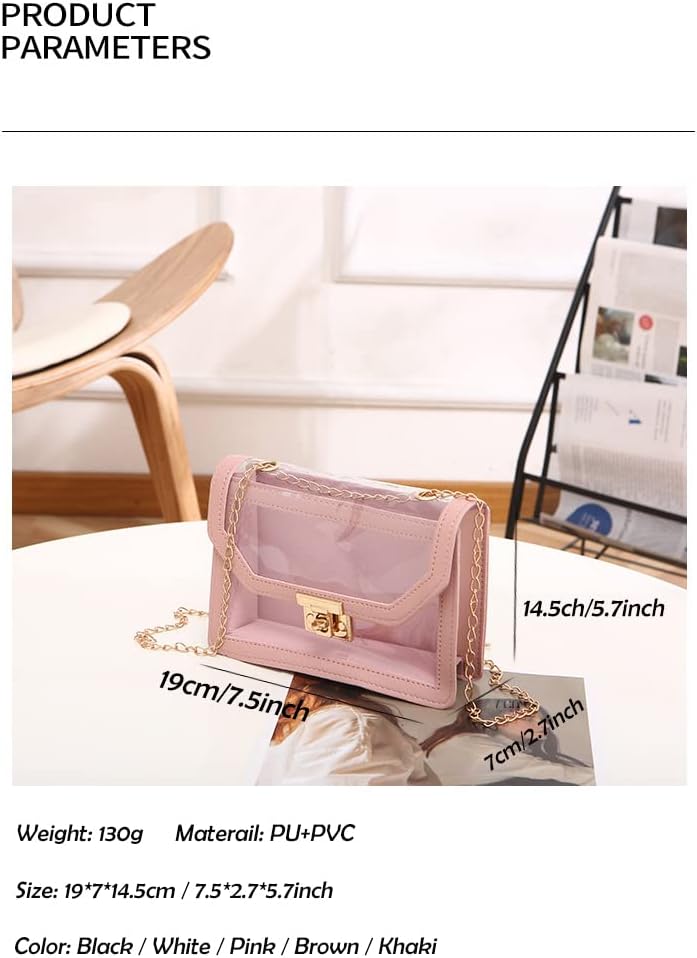 ✔ Chain shoulder strap: The chain strap of this clear purses for women is unadjustable, can be used as an underarm bag or crossbody bag.