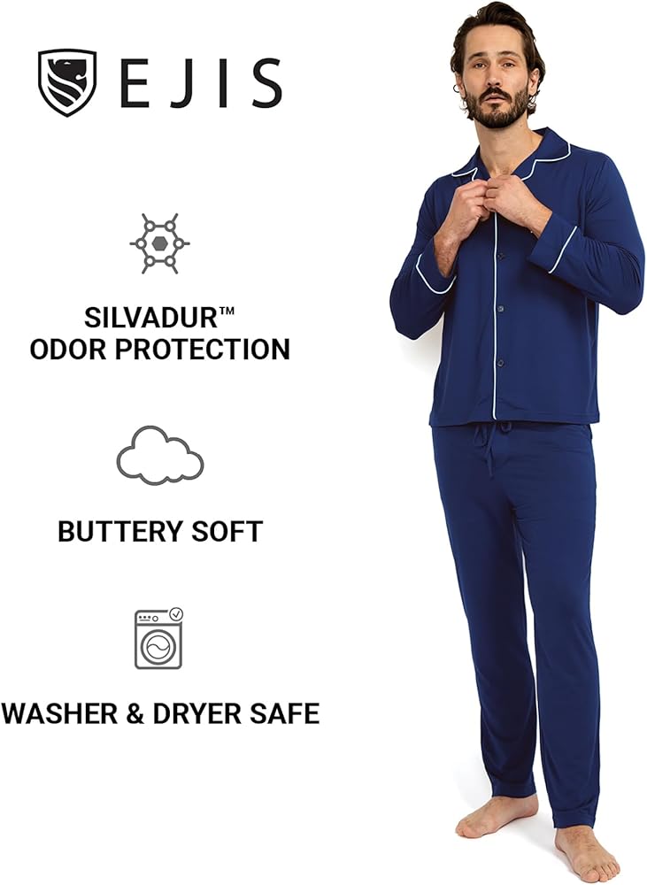 ابقِ منتعشًا طوال الليل - تتميز مجموعة البيجامات الرجالية لدينا بتقنية سيلفادور المضادة للروائح، مما يوفر نضارة تدوم طويلاً بعد الارتداء. استمتع بنوم متواصل دون القلق بشأن الروائح غير المرغوب فيها مع ملابس النوم الرجالية لدينا.