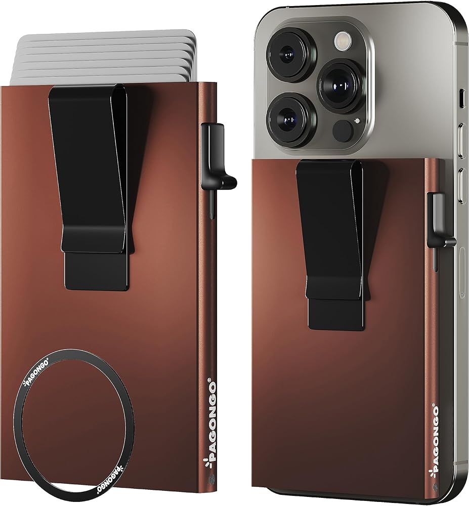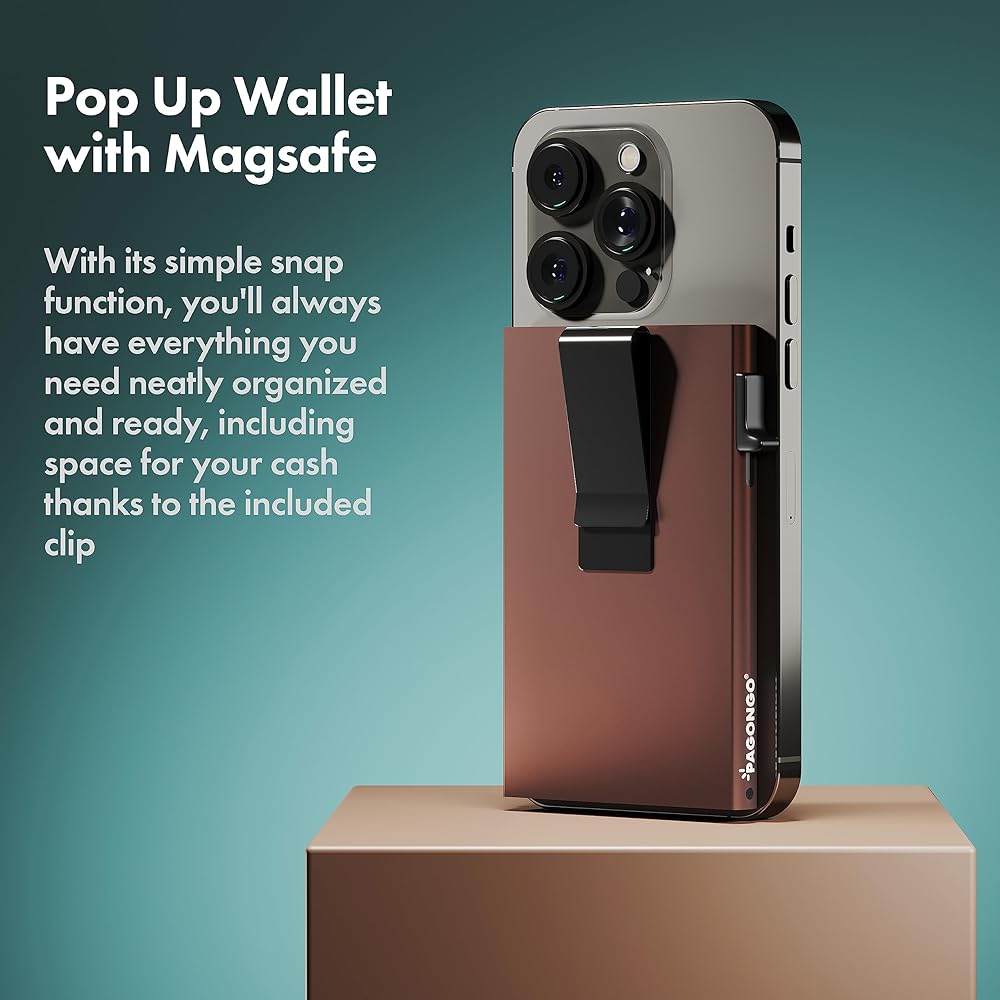 محفظة PAGONGO Magsafe، محفظة Mag Safe مغناطيسية بسيطة، حامل بطاقة ائتمان منبثق مع مشبك نقدي، محفظة Apple Magsafe، محفظة Iphone، محفظة مغناطيسية Iphone، مع حلقة مغناطيسية بنية