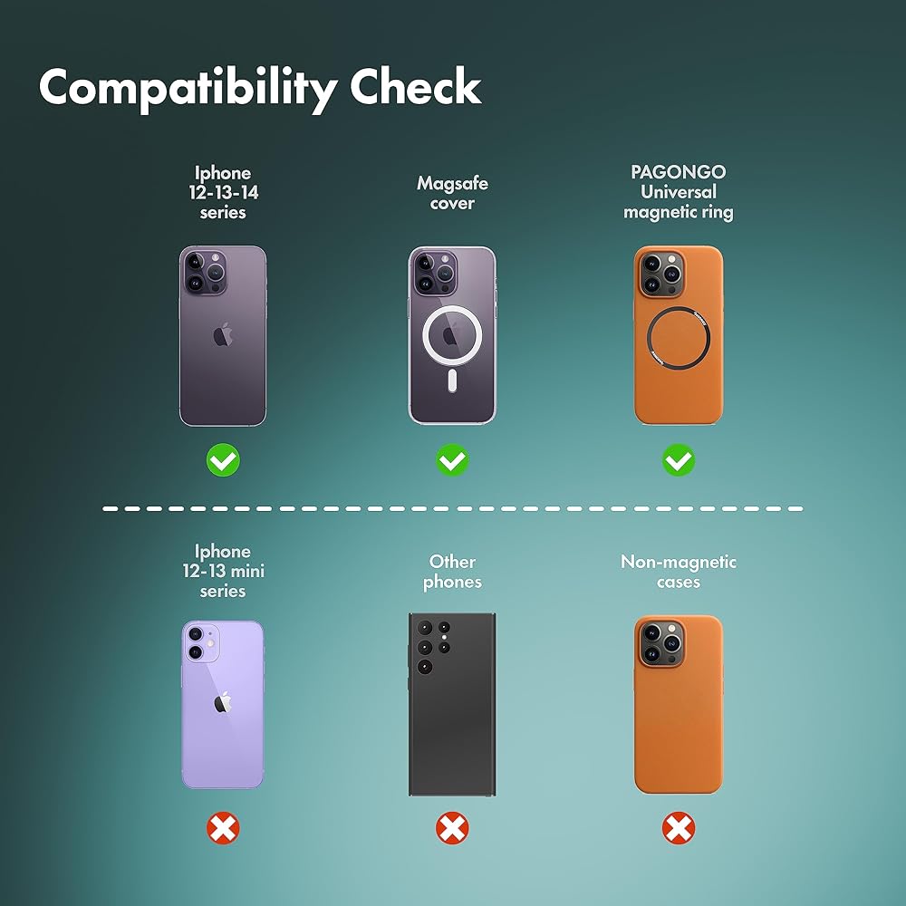 • 👍 [التوافق] - متوافق فقط مع iPhone 14/14 Plus/14 Pro/14 Pro Max/13/13 Pro/13 Pro Max/12/12 Pro/12 Pro Max، مع حافظات MagSafe. غير متوافق مع آيفون 13/12 ميني.