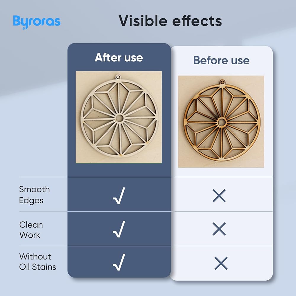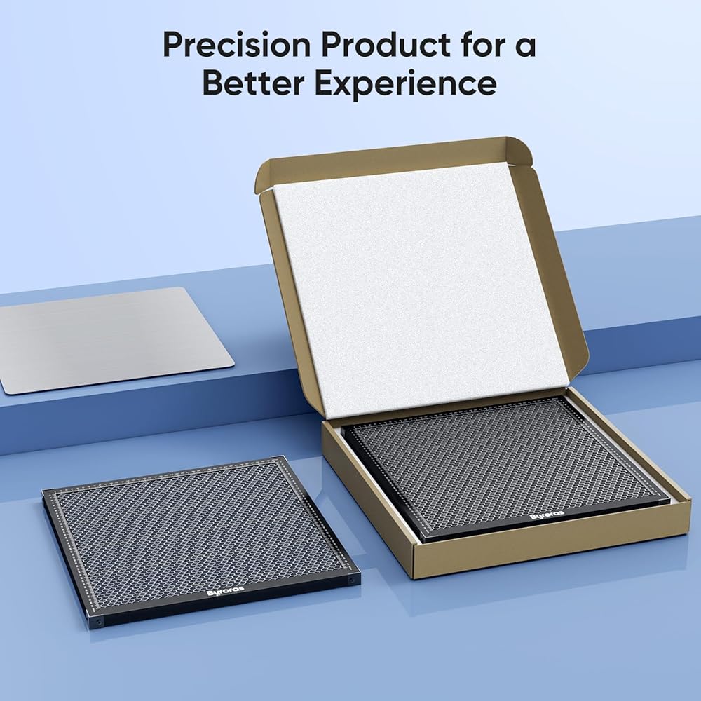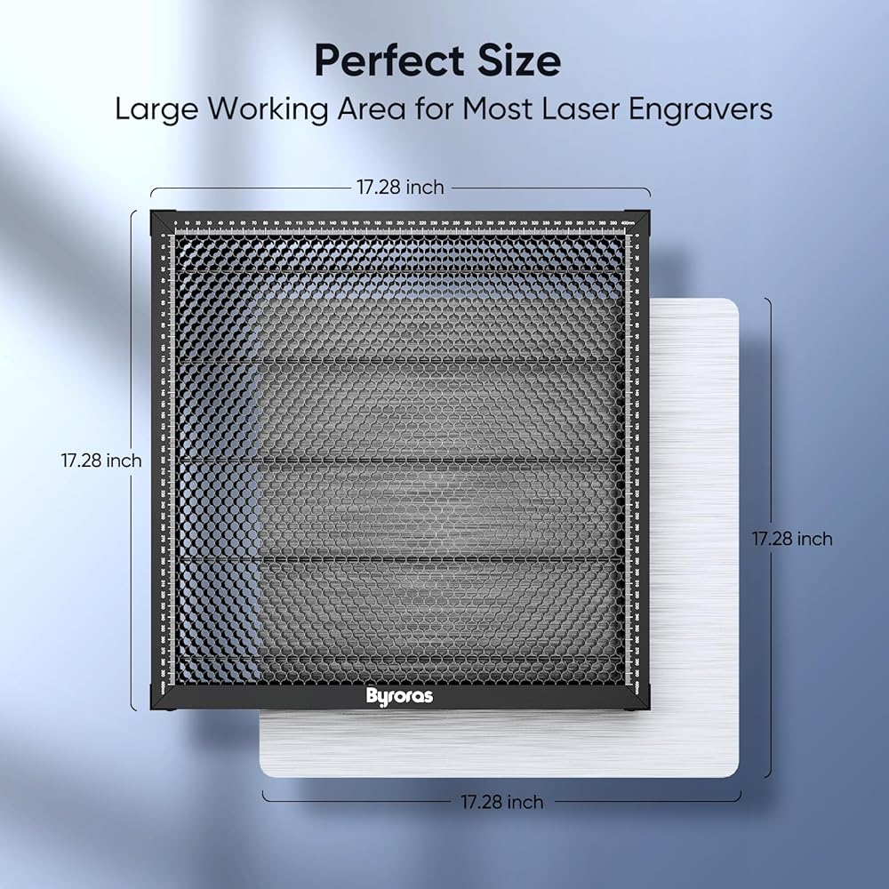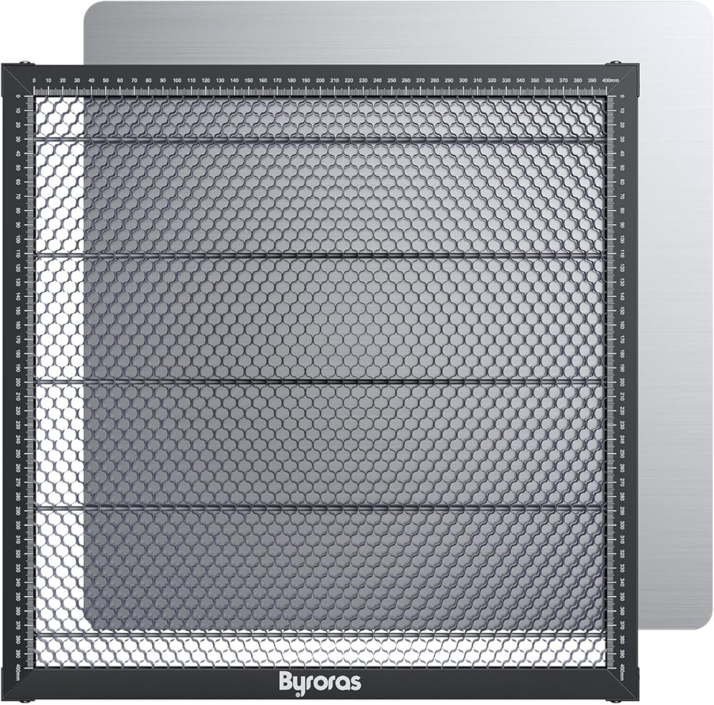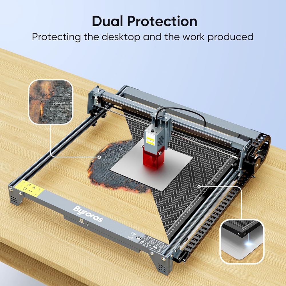 Double Protection: The Byroras honeycomb double protection structure can absorb and deflect the light and debris. Besides, there is an aluminum sheet that you can place underneath to protect your work surface since the Diode light can't penetrate aluminum. It helps you to prevent over-burn, and keep your cutting works safe.