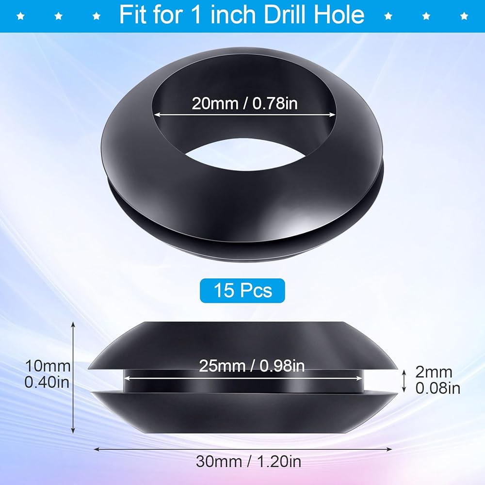 HINZIC 30 Pack 3/4” (20mm) Rubber Grommets Fits for 1 inch Drill Hole Double Sided O Ring Wire Bolts Sealing Guards Protection Insulation- Black