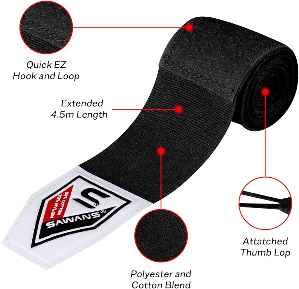 • Boxing inner wraps enhanced grip stretch to allow you to practice better with some hard hits without the risk of dislocating intact wrist hand bones keep your hand upkeep under the boxing gloves and throwing heavy punches with inner wraps.