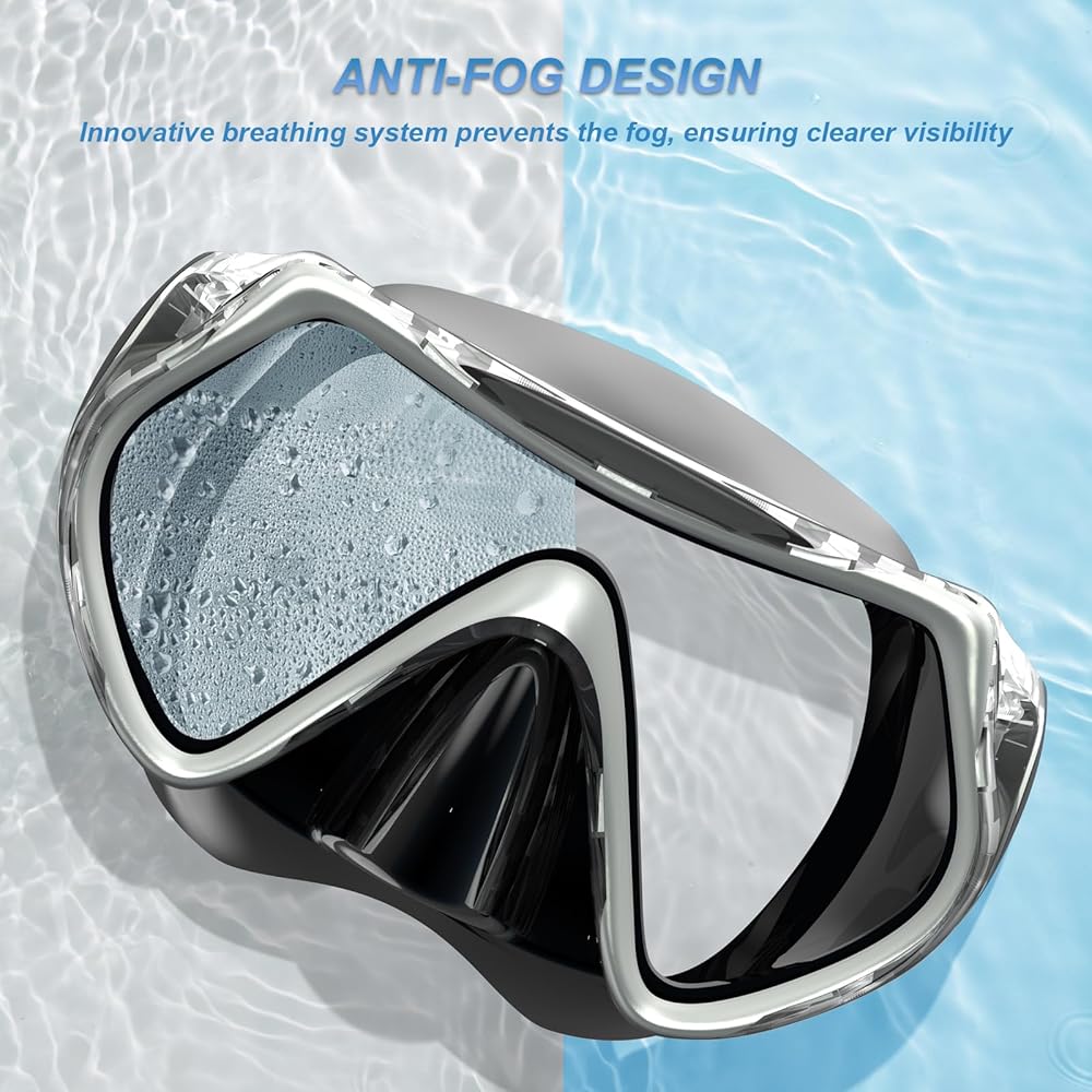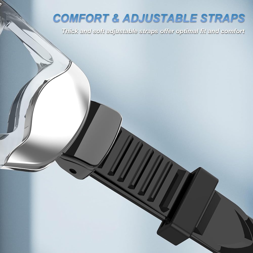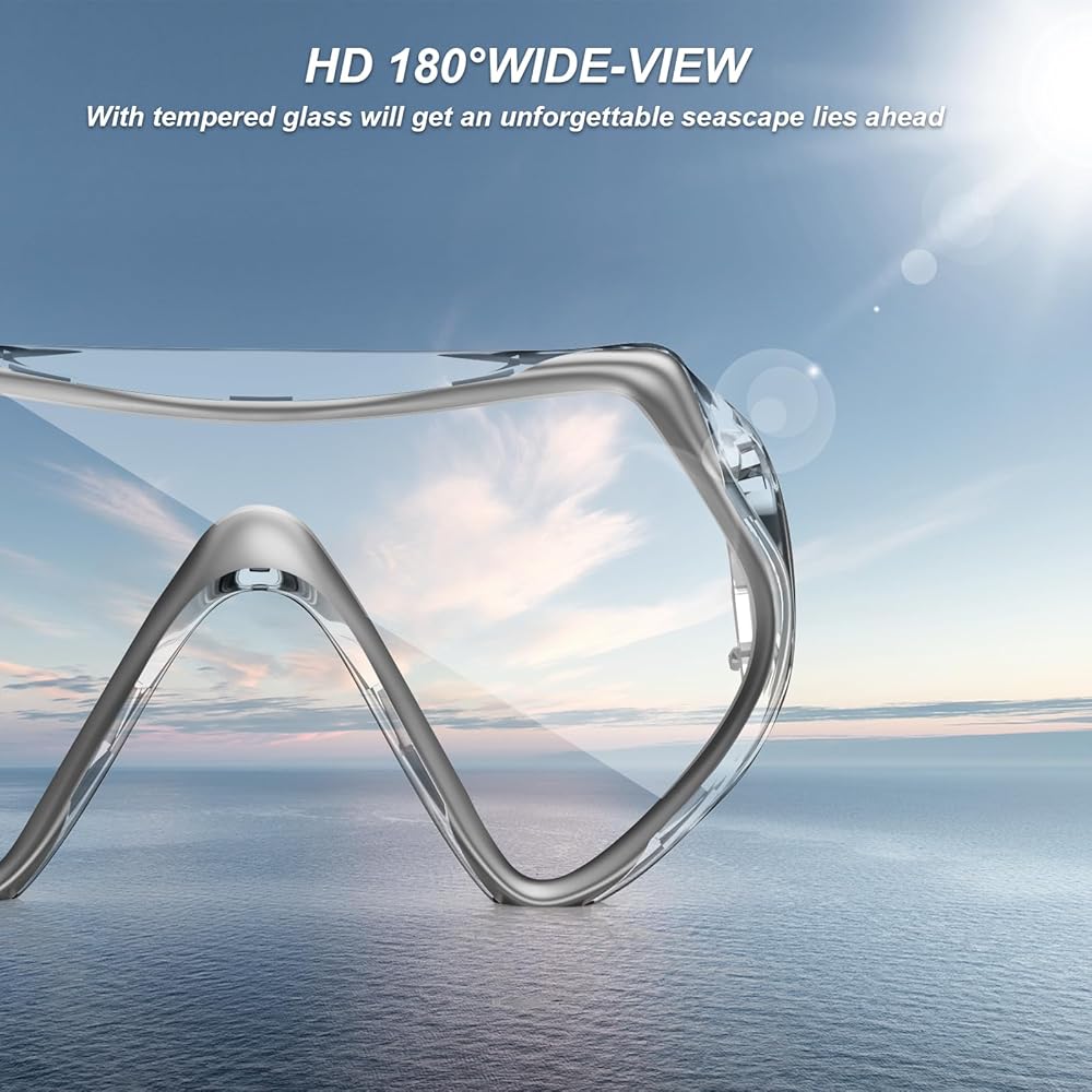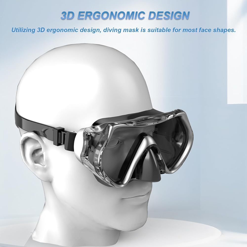 مريح ومقاوم للماء: يتميز قناع الغطس بتقنية قالب إغلاق الوجه من السيليكون المضلع الناعم، مما يوفر ملاءمة مريحة ومضادة للماء. يضمن الحزام القابل للتعديل ملاءمة مثالية لمعظم الوجوه، مما يحافظ على الماء خارجًا ويحمي عينيك.