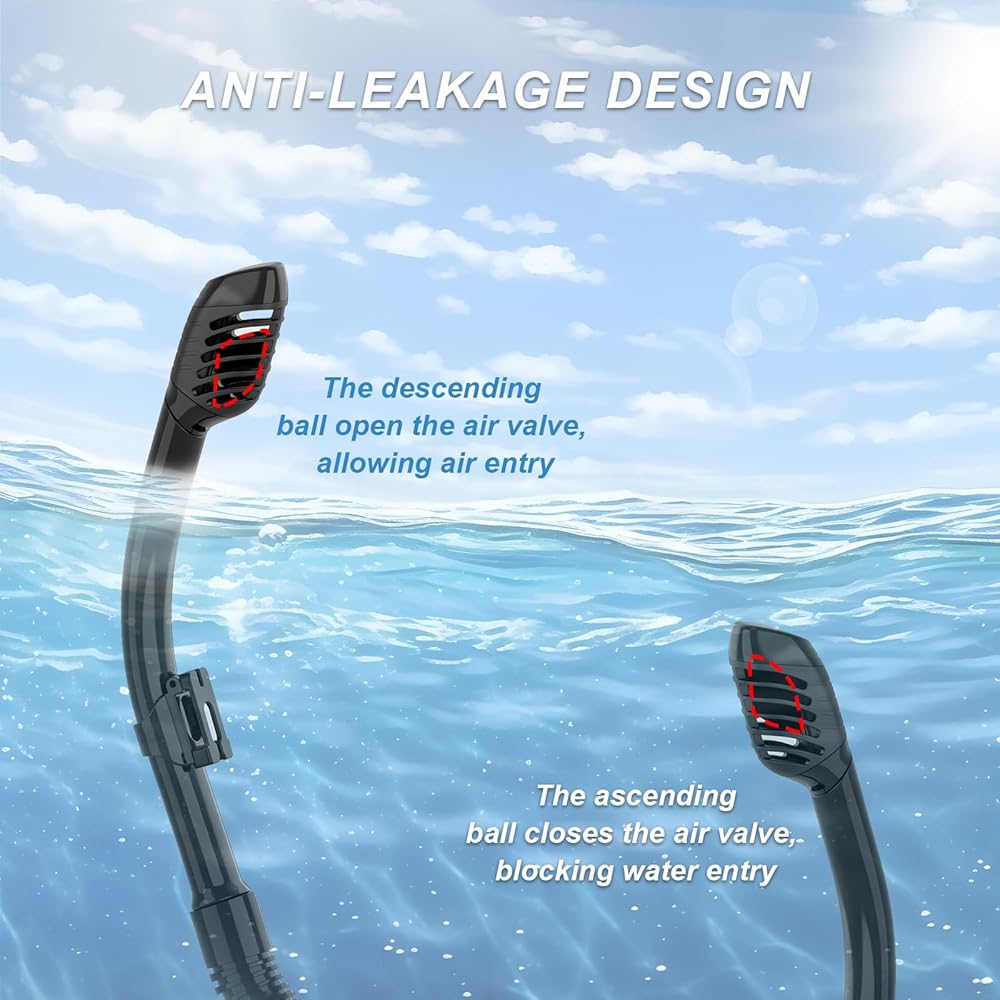 مضادة للضباب ولا تسرب: تتميز مجموعة الغطس BuyCard بتصميم صمام عائم جاف. أنبوب التنفس ليس مرنًا فحسب، بل يصرف الماء بسهولة، مما يضمن تجربة تنفس سلسة. يخضع سطح العدسة لمعالجة خاصة مضادة للضباب للحفاظ على رؤية واضحة تحت الماء.