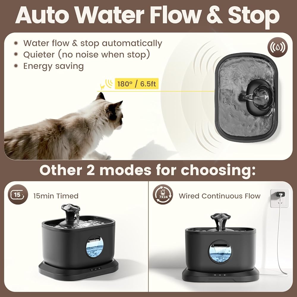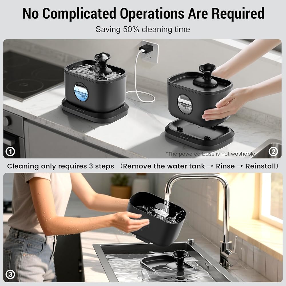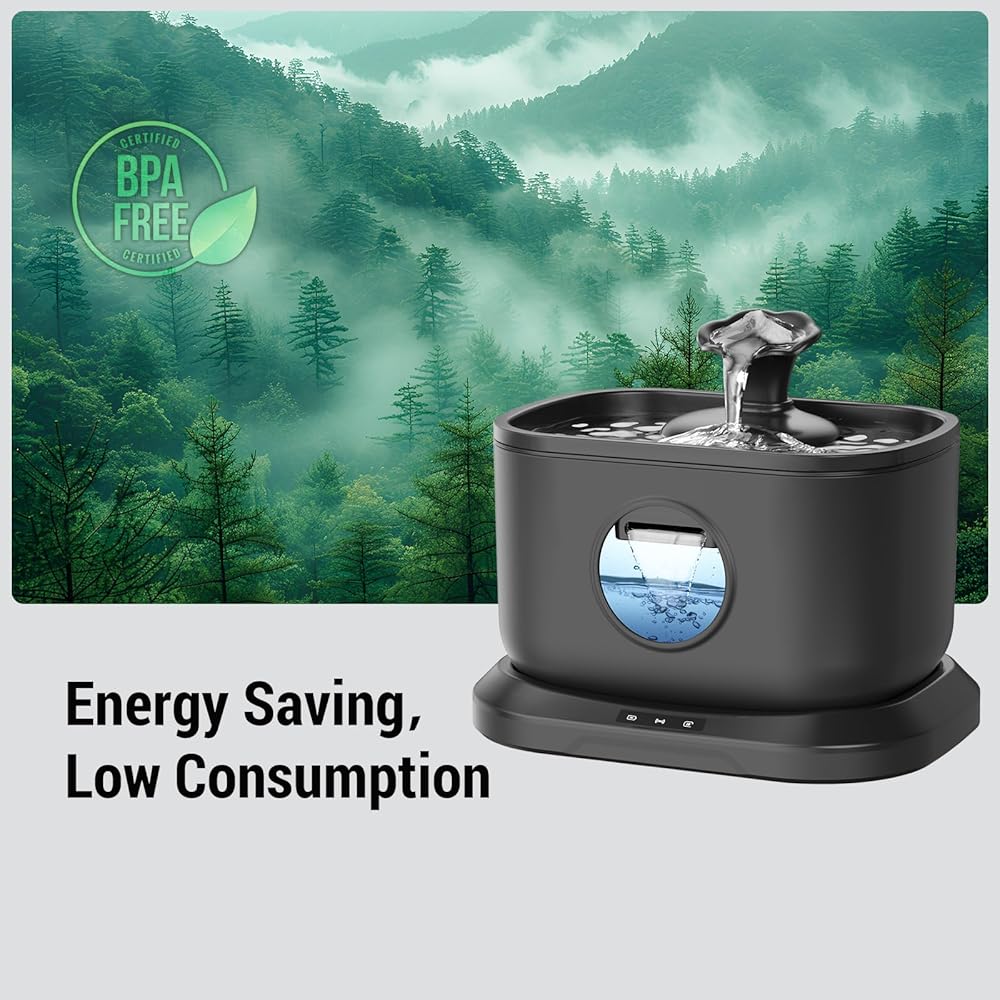 مضخة مياه فائقة الصمت 5 فولت: من أجل تقليل الضوضاء، تستخدم نافورة الشرب للقطط من بيتليبو مضخة مياه صامتة بالداخل. يصدر فقط حوالي 20 ديسيبل من الصوت عند التشغيل، وهو هادئ جدًا. لا داعي للقلق بشأن خوف حيوانك الأليف أو الضوضاء التي تعطل عادات نومه. مضخة المياه الموفرة للطاقة 5 فولت والصديقة للبيئة لا تستهلك الكثير من الطاقة حتى لو كانت تعمل لفترة طويلة.