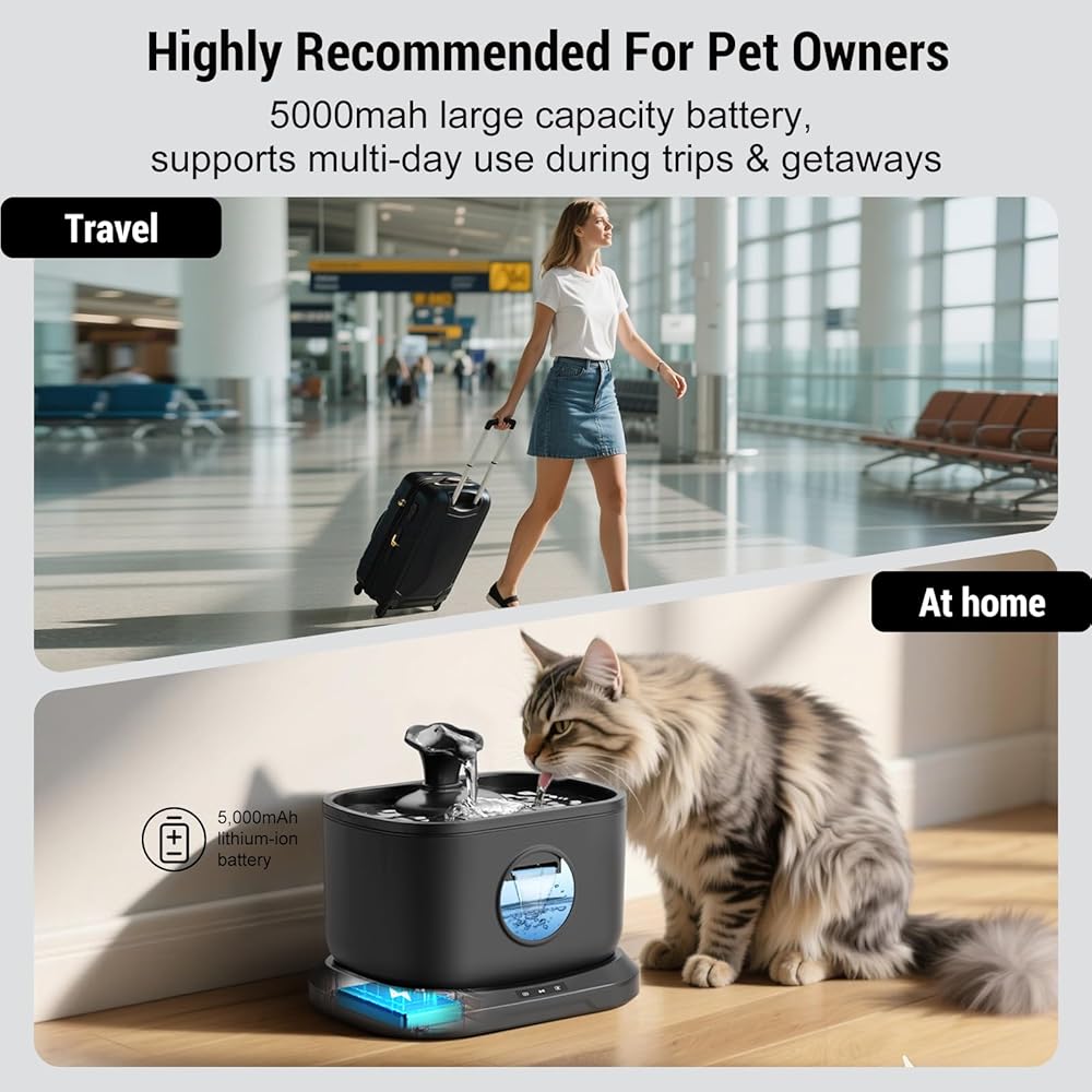 【نافورة وعاء ماء ذات سعة كبيرة 3.2 لتر/108 أونصة】تتمتع نافورة الماء للحيوانات الأليفة من بيتليبو بسعة كبيرة تبلغ 3.2 لتر/108 أونصة، وهي مثالية للحيوانات الأليفة الصغيرة والمتوسطة الحجم. يمكن لنافورة مياه القطط توفير مياه الشرب للقطط لمدة 10 أيام. سعة تخزين المياه لموزع المياه للقطط كبيرة بما يكفي، لذلك ليست هناك حاجة لإضافة الماء كل يوم أو بشكل متكرر، مما يجعله مناسبًا جدًا للأسر التي لديها العديد من الحيوانات الأليفة.