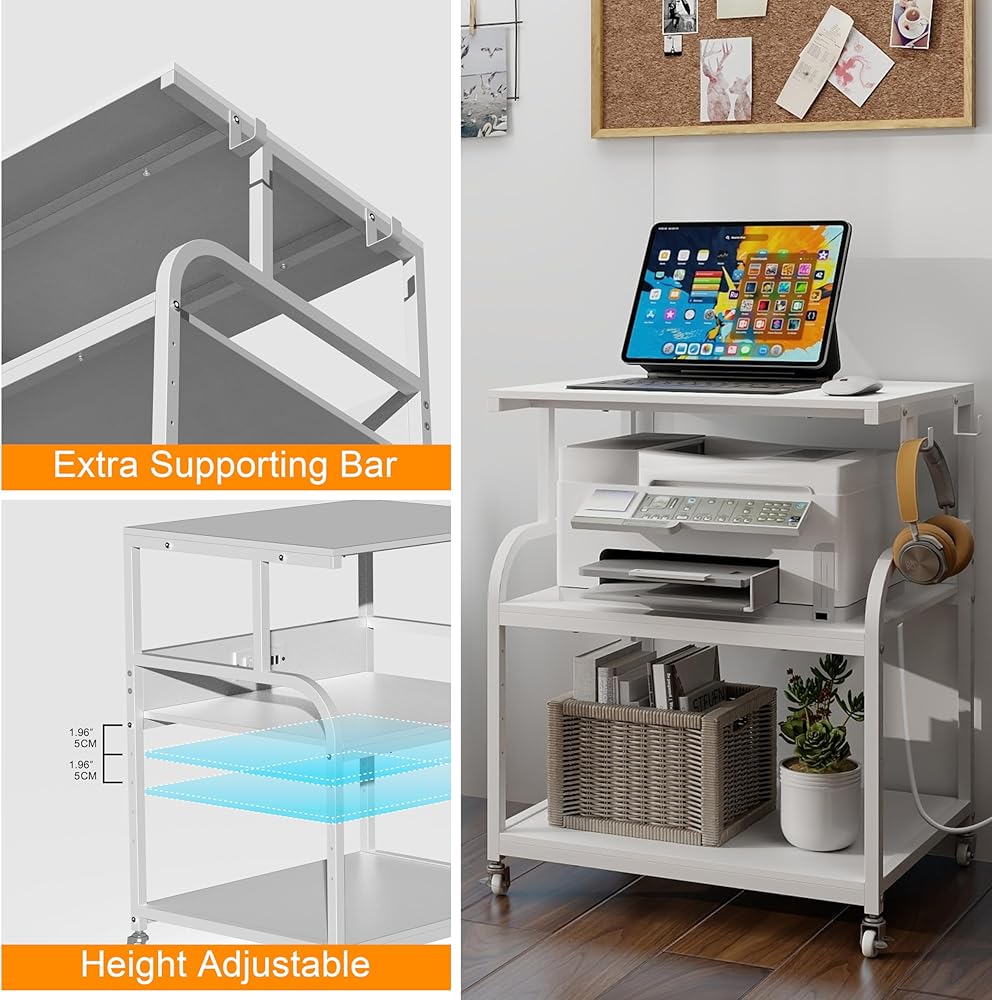 【هيكل ثابت وقوي】نحن نفخر بموثوقية ومتانة حامل الطابعة الخاص بنا. مصنوع من لوح جسيمات ممتاز وإطار حديدي عالي التحمل، ويوفر متانة استثنائية. سطح اللوح الخشبي المقاوم للخدش والماء يجعل من السهل تنظيفه وصيانته.