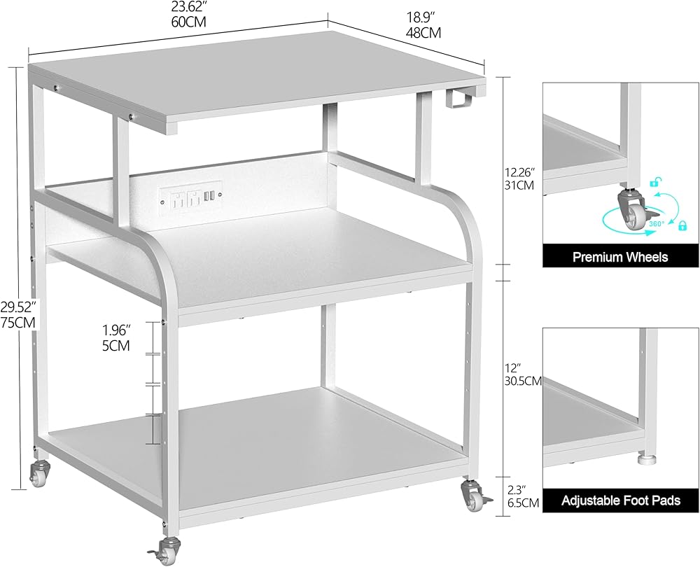 【 حامل طابعة كبير مزود بمنفذ طاقة ومنافذ شحن USB 】 يأتي هذا الحامل متعدد الاستخدامات مع منفذ طاقة مدمج ومنافذ شحن USB، بما في ذلك منفذي شحن ومقبسين للطاقة. يمكنك الآن شحن الطابعة أو الكمبيوتر المحمول أو الكمبيوتر أو الهاتف الذكي بسهولة دون الحاجة إلى منافذ إضافية. قل وداعًا للفوضى ورحب بمساحة عمل أكثر انسيابية.