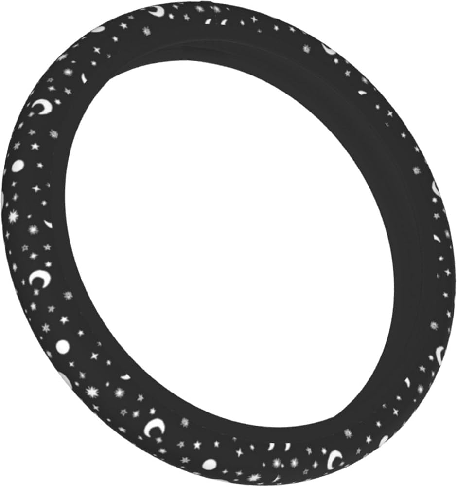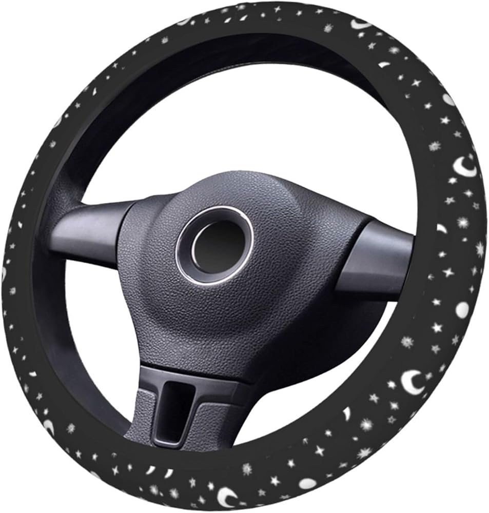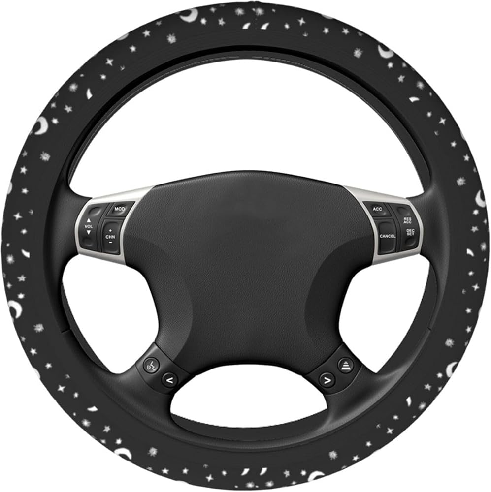 غطاء عجلة القيادة على شكل نجمة القمر أبيض وأسود لسماء الليل غطاء عجلة القيادة على شكل قمر ملحقات السيارة يناسب عجلة القيادة مقاس 15 بوصة للفتيات والنساء وغطاء حماية لعجلة القيادة مضاد للانزلاق