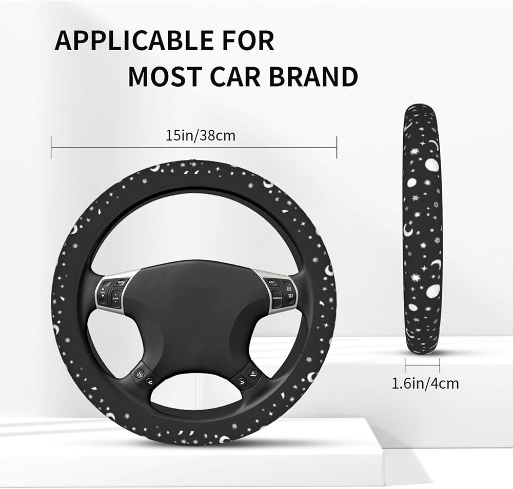 • SIZE : Moon Steering Wheel Cover Size 15x1.6 Inches, Used For Steering Wheels With A Diameter Of 14~15 Inches. Fits For Most Vehicles, Suvs, Vans, Trucks.Add Some Personality To Your Car Or Truck,Every Auto Needs A Cool Accessory.