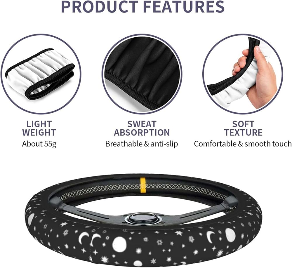 • MATERIAL : Made Of High-Quality Neoprene Moon and Star Steering Wheel Covers, Soft Texture, Breathable And Comfortable To Touch.