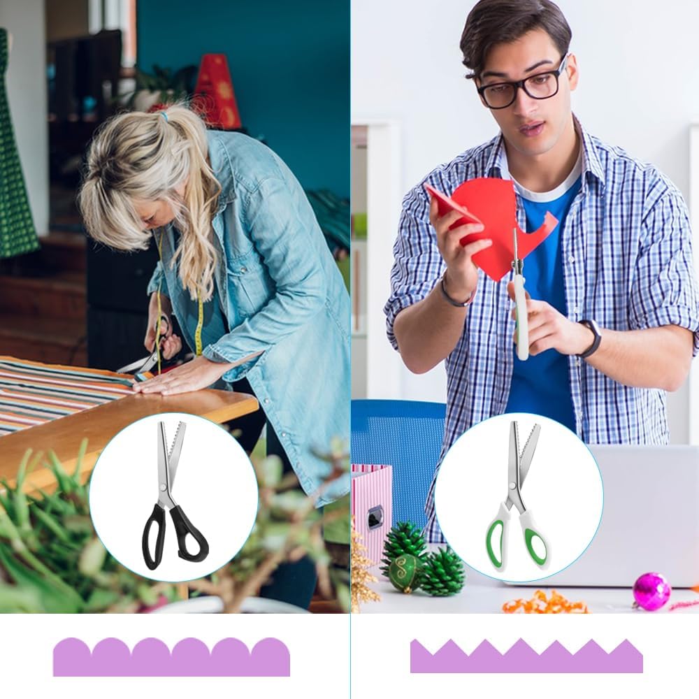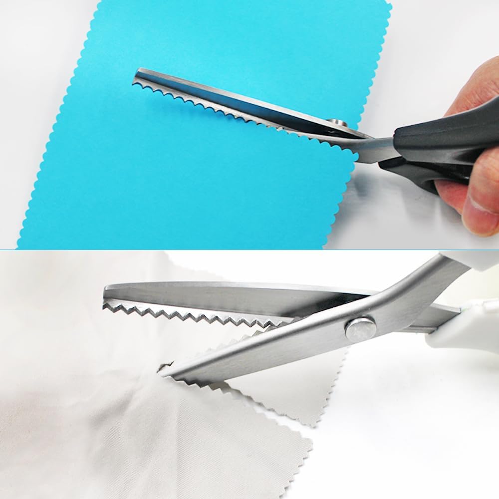• Two Patterns: You will receive two different pinking shears, one with triangular edge shapes and the other with rounded edge shapes, the unique jagged design can add creativity to your projects.