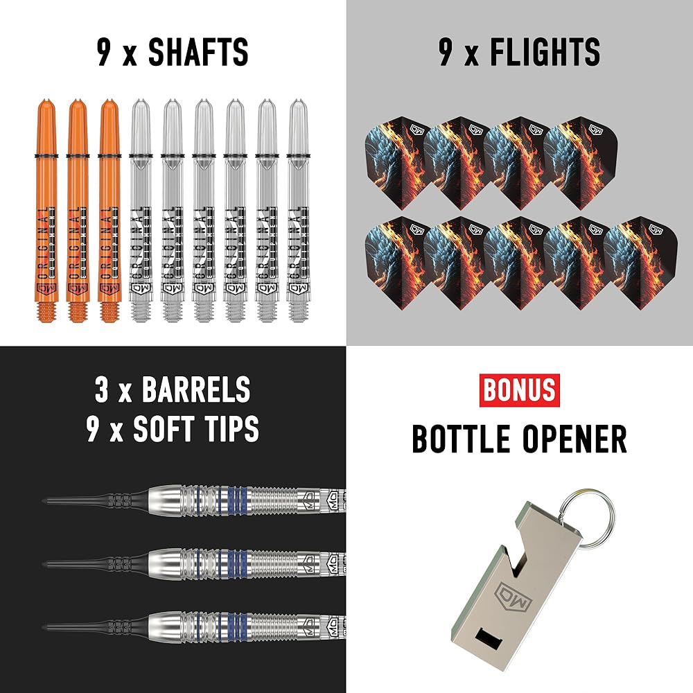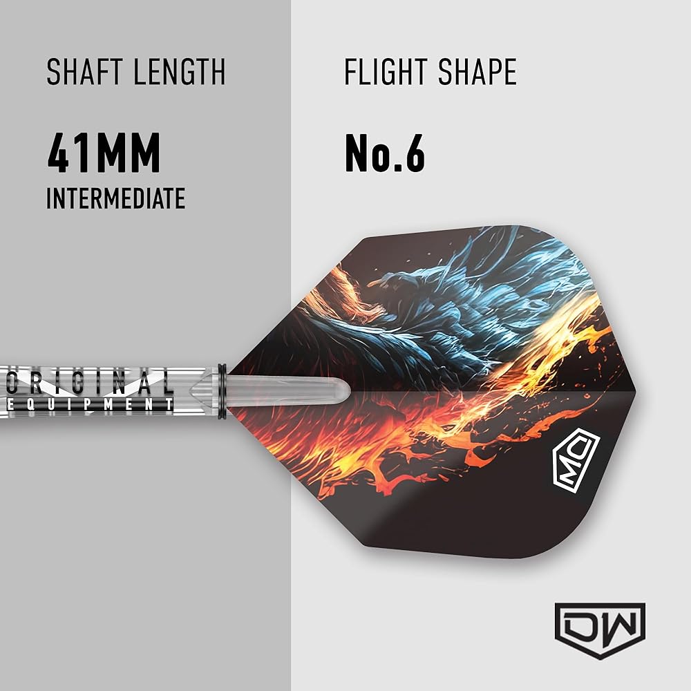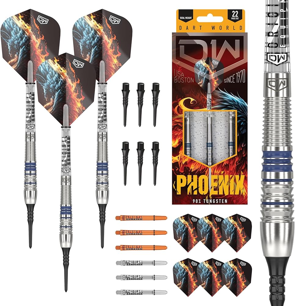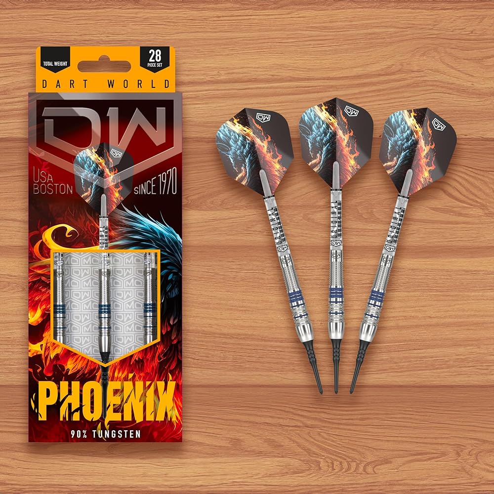Experience the fiery performance of DW Phoenix, a 90% tungsten dart tailored for intermediate players who prefer a front grip stance. Designed with a front-loaded barrel adorned with meticulous back cuts, radial grooves, and scallop cuts, the Phoenix offers optimal grip and control for front grippers seeking a balanced playing experience. But that's not all—Phoenix comes fully equipped to extend your game with extra flights and shafts included, ensuring uninterrupted playtime and maximum enjoyment. Get ready to ignite your passion for the game and elevate your performance with DW Phoenix.