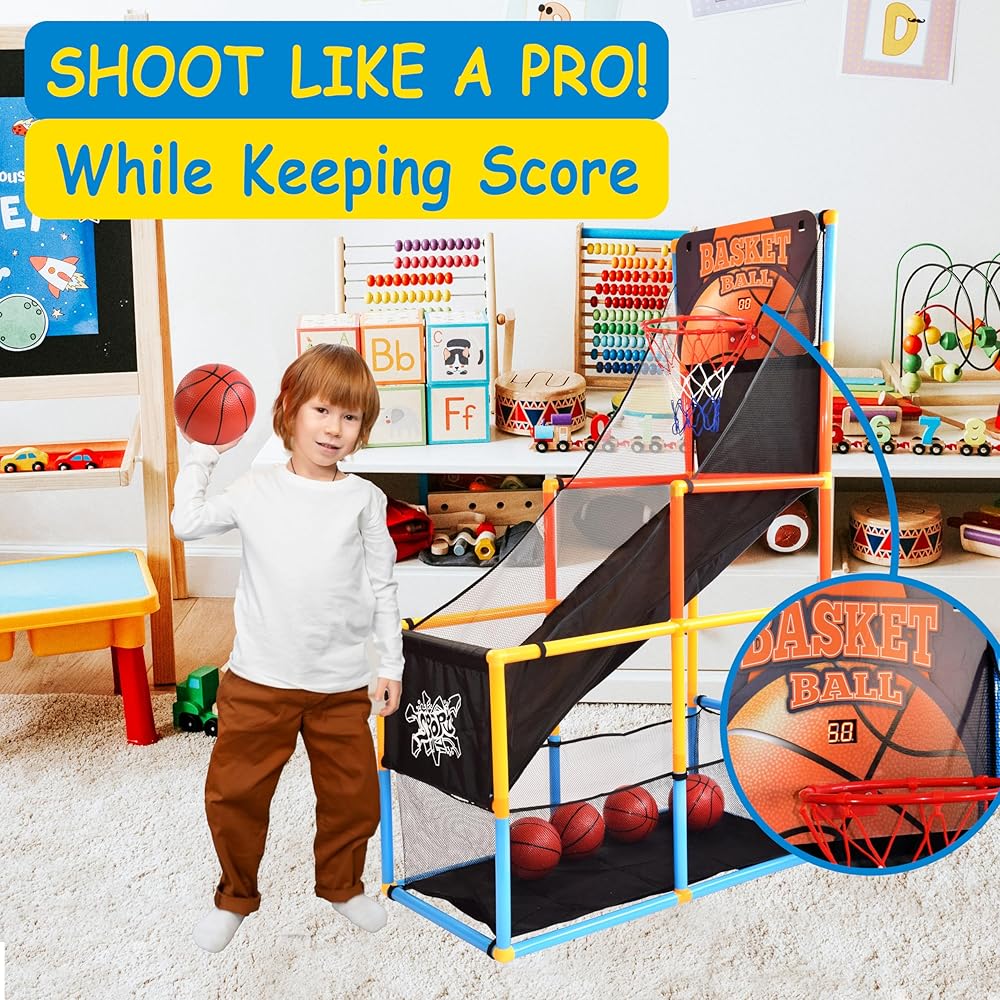 ارفع مستوى المتعة الداخلية مع لعبة كرة السلة أركيد المصممة خصيصًا للأطفال، والتي تتميز بلوحة نتائج إلكترونية مع ميزة العد التنازلي للوقت وصوت الهتاف لتجربة لعب مثيرة.