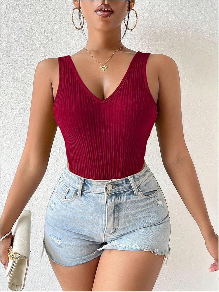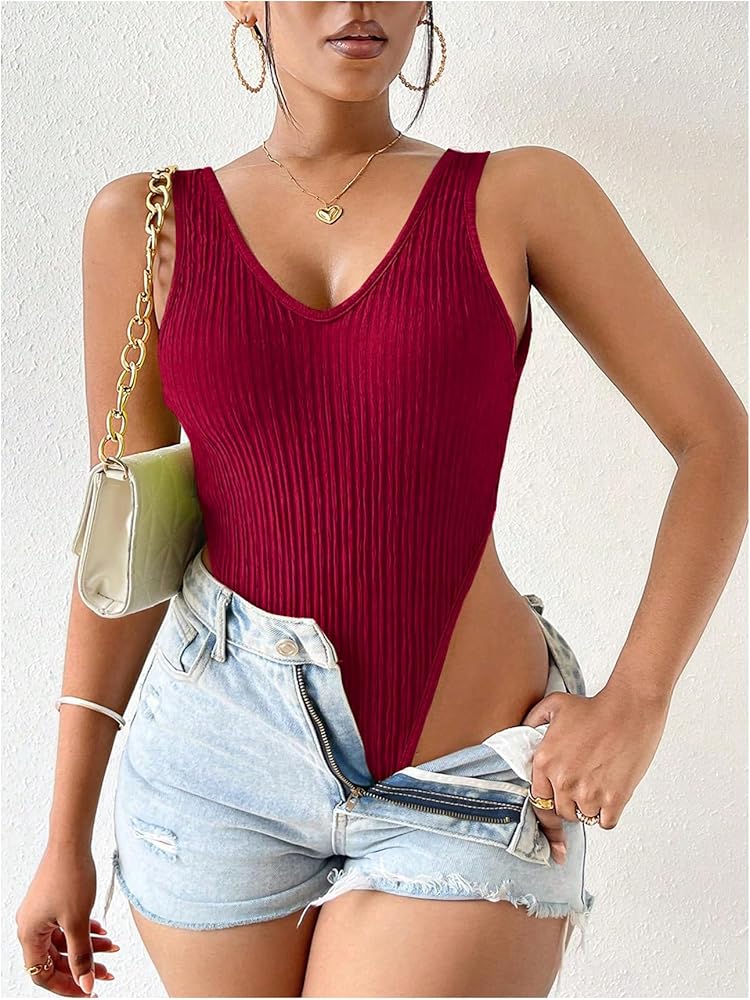 • Features: solid color, slim fit, rib knit, ribbed bodysuit for women