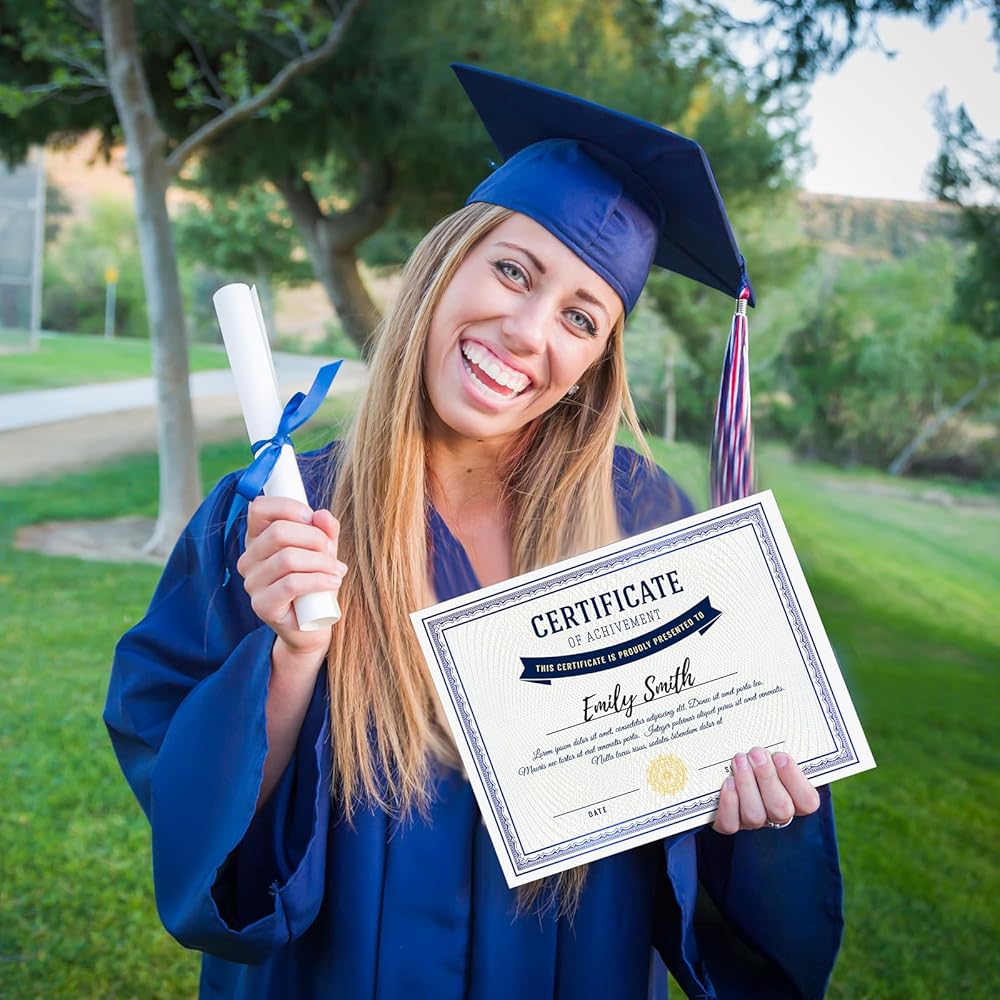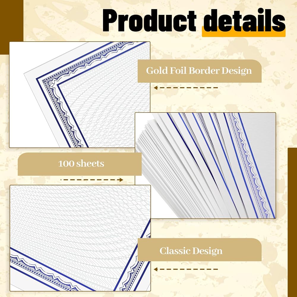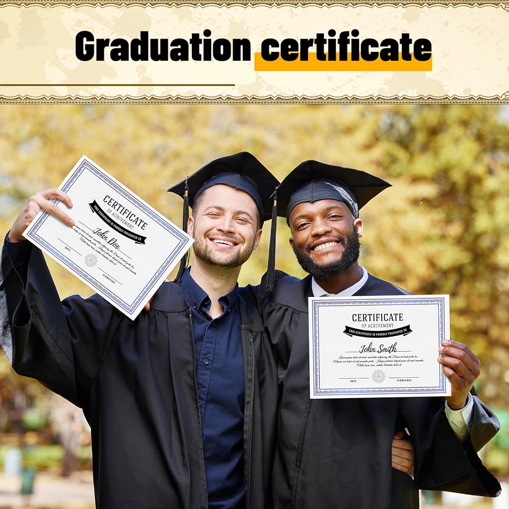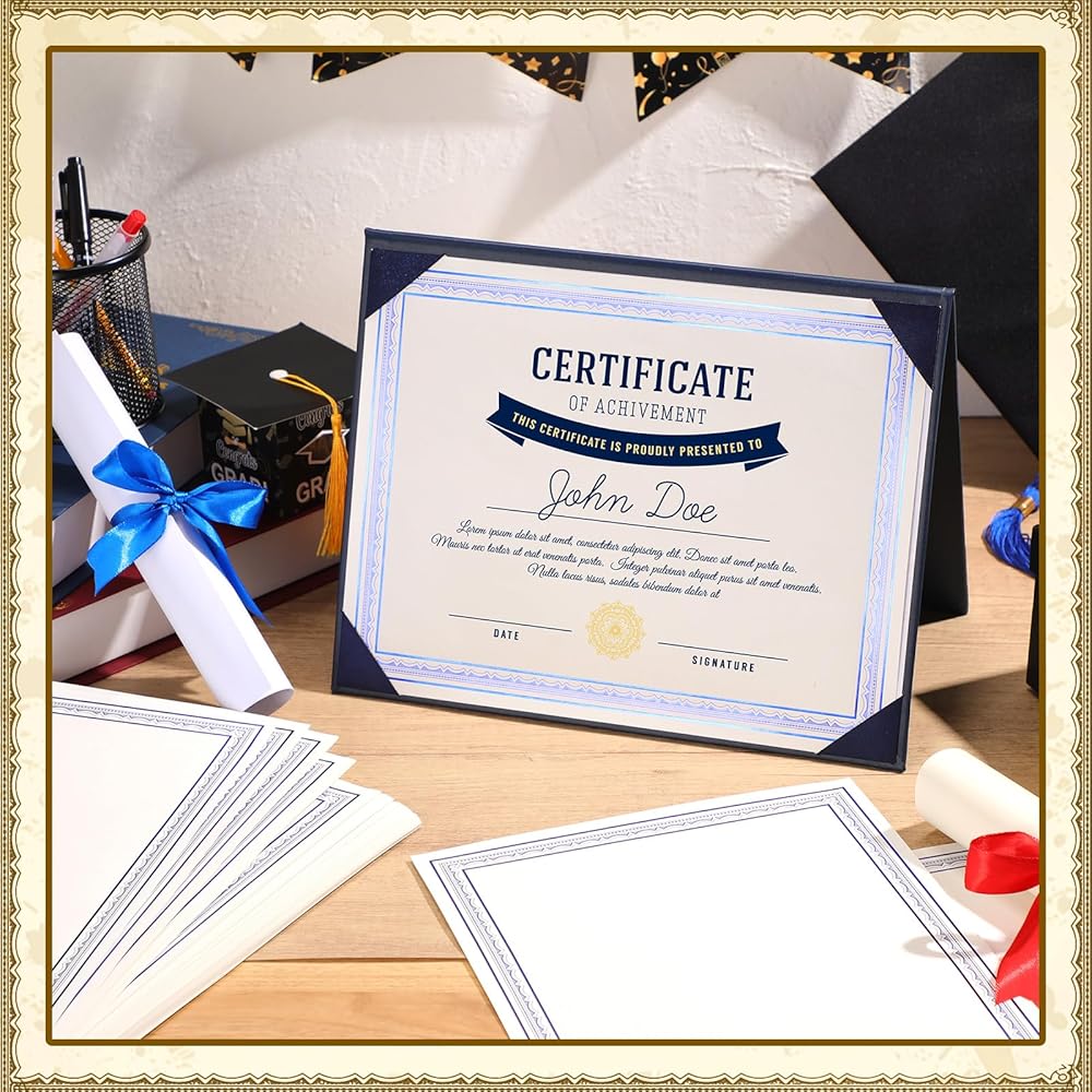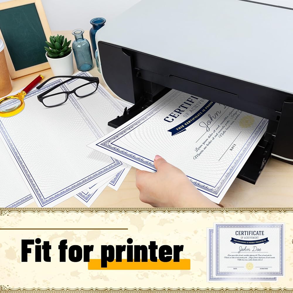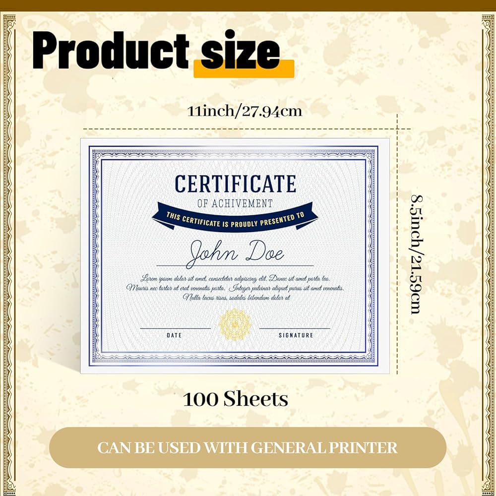 The printable certificate paper comes in a standard size of 8.5 x 11 inches/ 21.59 x 27.94 cm, making it an ideal choice for academic and professional certifications. Its ideal size fits easily in diploma covers and frames, keeping the certificates protected for a long time.