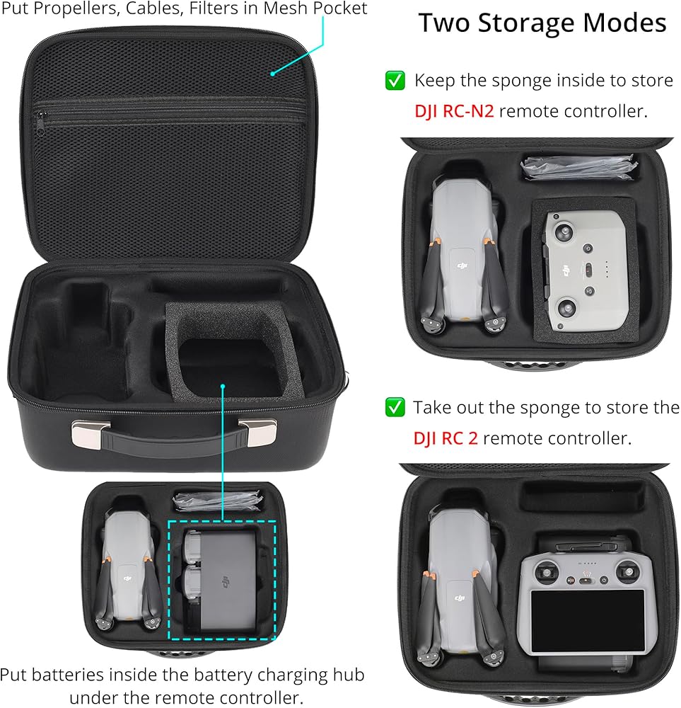 【تصميم فريد】- تصميم تخزين خاص لطائرة DJI Air 3/ Air 3 Fly More Combo Drone. سعة كبيرة، مفيدة جدًا ومريحة في الاستخدام. حقيبة ظهر ذات سعة كبيرة، يمكنها تخزين طائرة Air 3 بدون طيار، وجهاز التحكم عن بعد DJI RC-N2/ DJI RC 2، والبطاريات، والمراوح، والشاحن. توجيه محمول، يمكن تخزين ملحقات متعددة، مما يزيد من متعة الطيران.