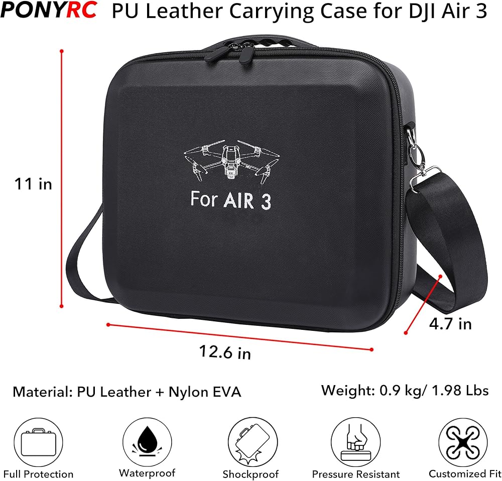 【قوي ومستقر】- حافظة PONYRC Air 3 مصنوعة من مواد عالية الكثافة لمزيد من المتانة. غلاف داخلي من مادة EVA عالي الجودة ومقاوم للماء من البولي كربونات يؤمن كل شيء بأمان. يحمي من الخدوش والصدمات والسقوط. القماش عالي الجودة متين ويمكنه حماية طائرتك بدون طيار Air 3 بشكل أفضل.