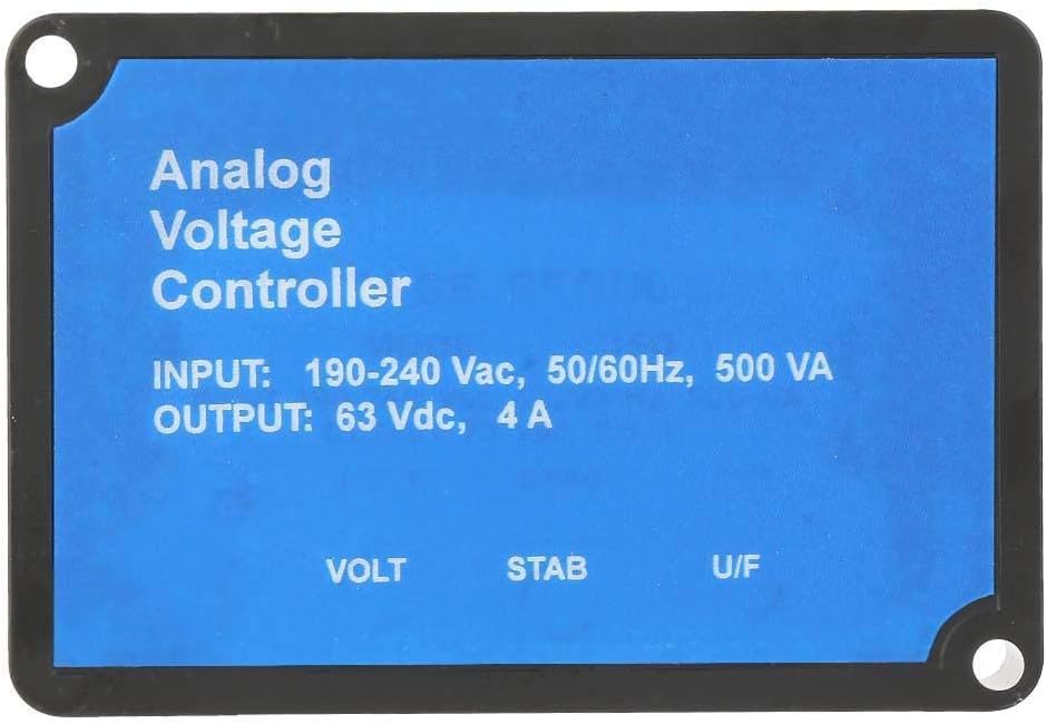 This AVC63-4 voltage regulator is an encapsulated automatic electronic voltage regulator that controls the output of the generator by regulating the current into the exciter field. The low frequency protection 60Hz system presets the inflection point to 54-61Hz, and the 50Hz system presets the inflection point to 45-51Hz. Maximum power consumption per unit is 8W.