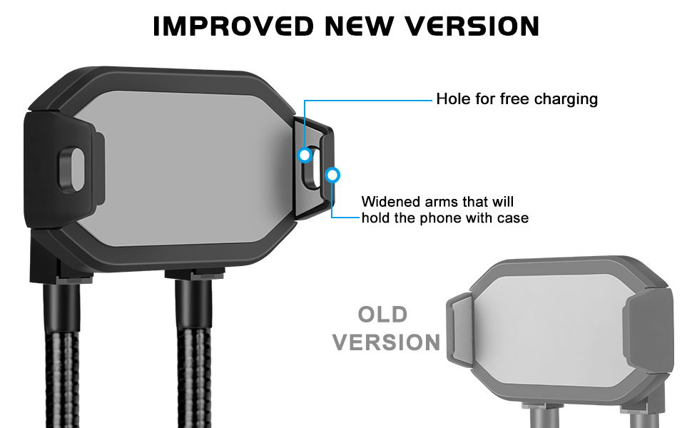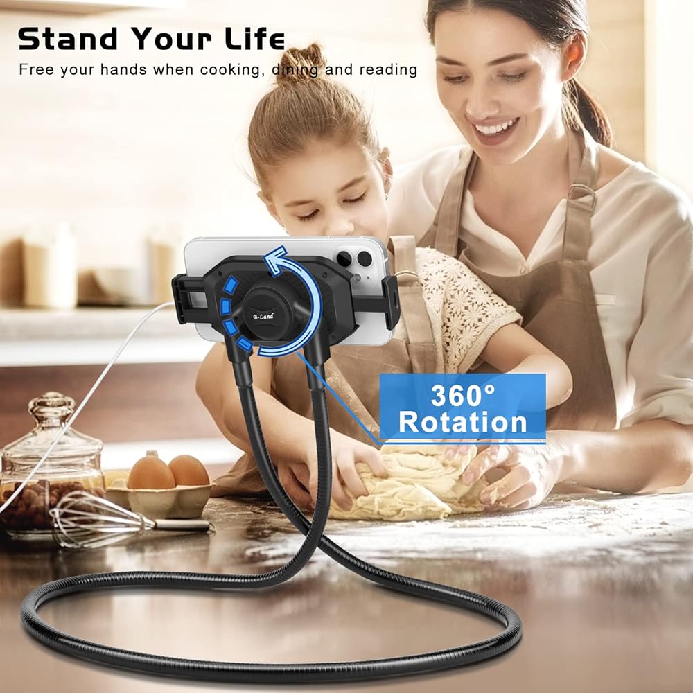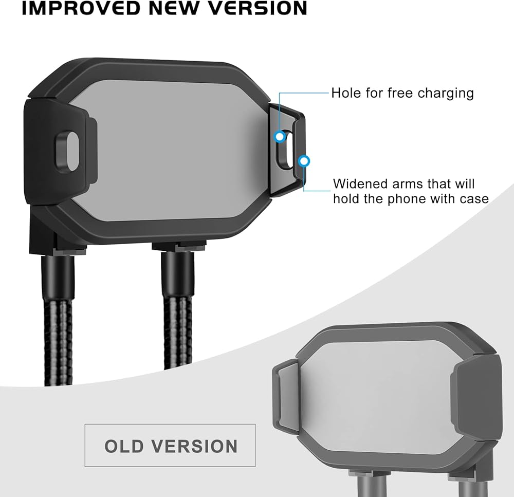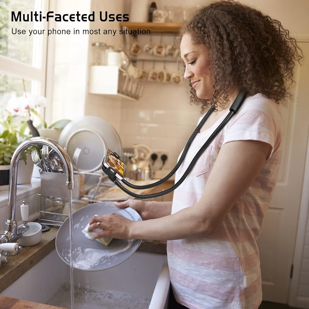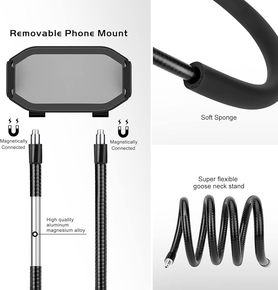 【استخدم هاتفك في أي موقف】يتم ربط حامل رقبة الهاتف هذا بحامل رقبة الإوزة المرن الذي يمكنك ثنيه بأي شكل تحتاجه ليناسب هاتفك. استخدمه كحامل على مكتبك. لفه تحت مرتبتك لدعم هاتفك في السرير للعرض بدون استخدام اليدين. أو لفه حول رقبتك لإجراء محادثة فيديو مع شخص ما أثناء المشي أو أثناء جلوسك على الأريكة ومشاهدة مقاطع الفيديو.