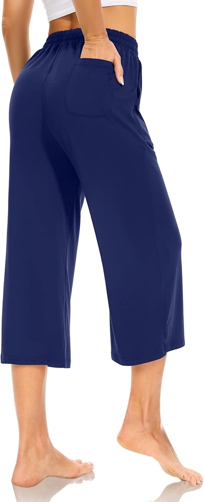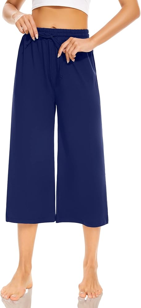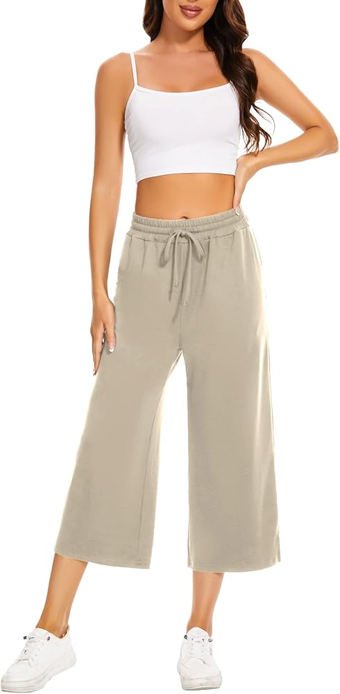 • Wide leg Capri Pants for Women: Flowy wide leg sweatpants featured in a high elastic waistband with adjustable drawstring allows you can for custom fit. Women's capri pants with a side split detail, cute design. Matching crop top, shirt and jacket with yoga pants with pockets for women to get a casual daily look