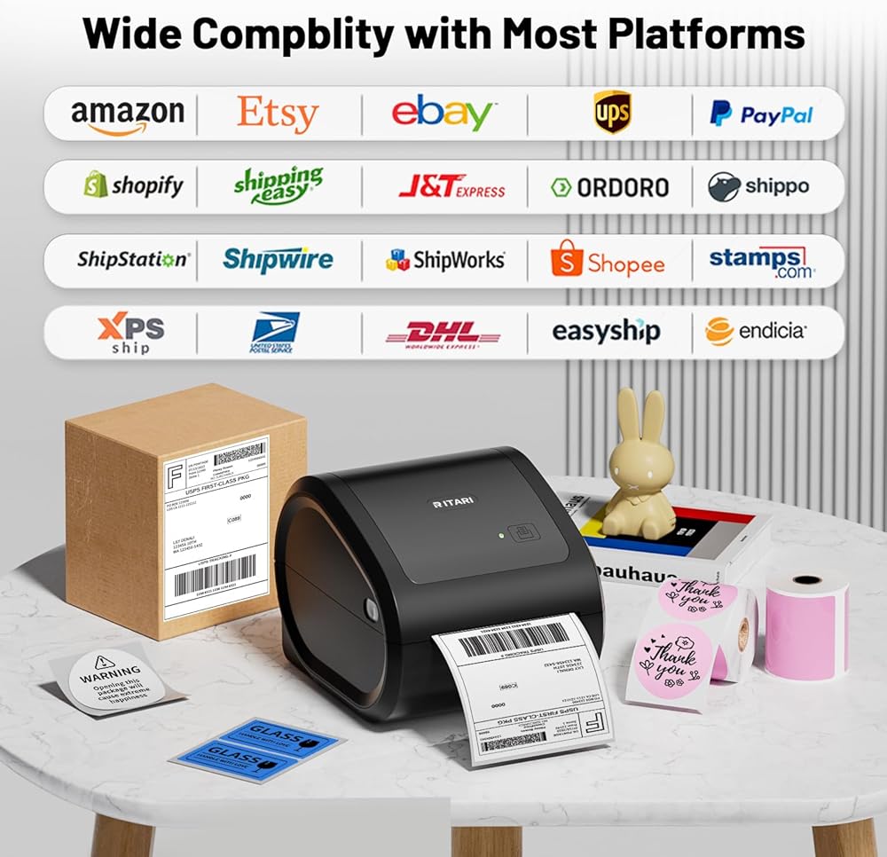 [توافق قوي مع النظام الأساسي] تقوم طابعة الملصقات الخالية من الحبر هذه لحزم الشحن بطباعة الملصقات من 1 بوصة إلى 4.6 بوصة عرضًا. تُستخدم طابعة الملصقات اللاسلكية Itari على نطاق واسع لمنصات الشحن، مثل Endicia، وDazzle، وShipStation، وShipping Easy، وShipo، وShipWorks، وOrdoro، وeBay، وAmazon، وEsty، وUSPS، وUPS، وPayPal، وShopify، وما إلى ذلك. مثالية لشركتك الصغيرة عبر الإنترنت لحزم الشحن.