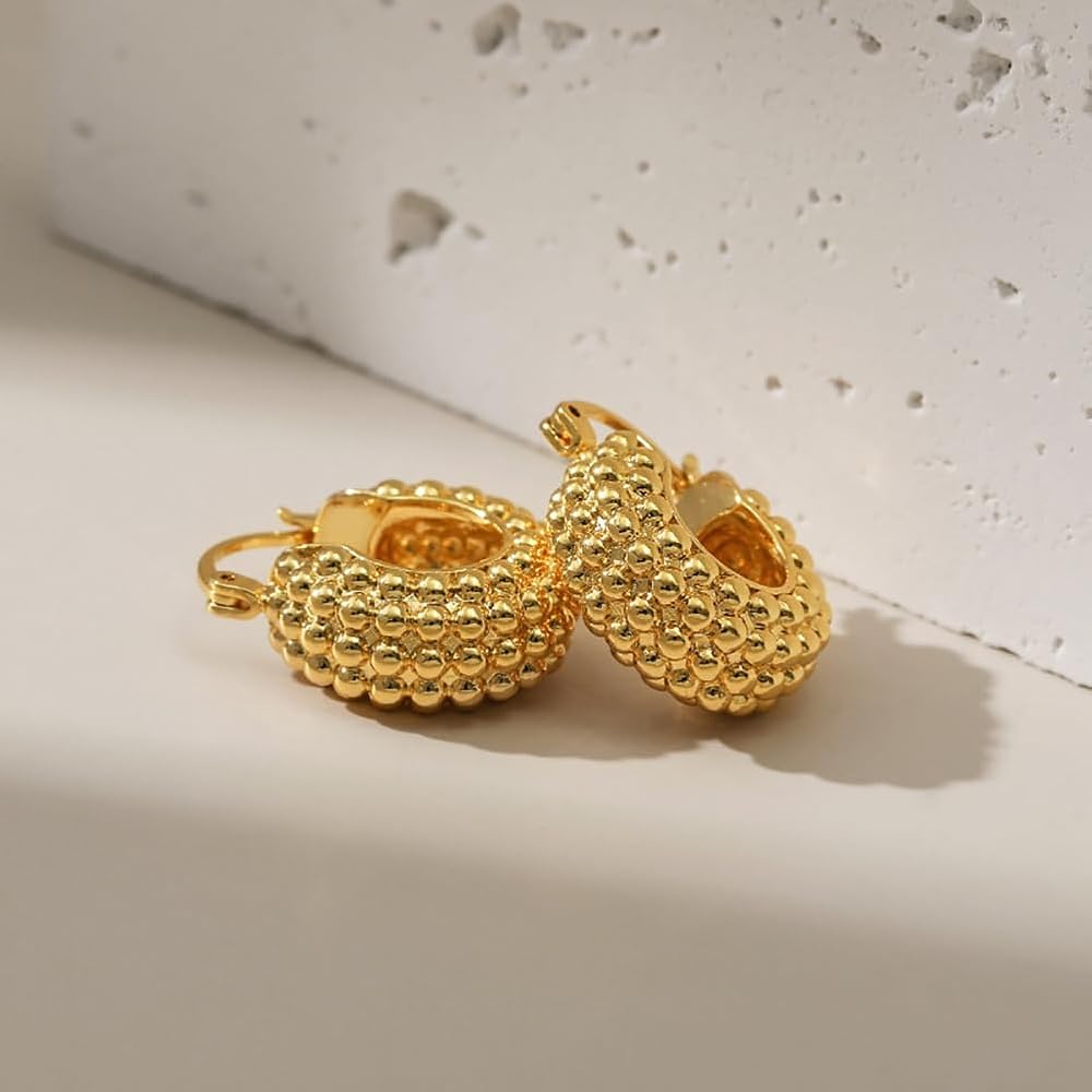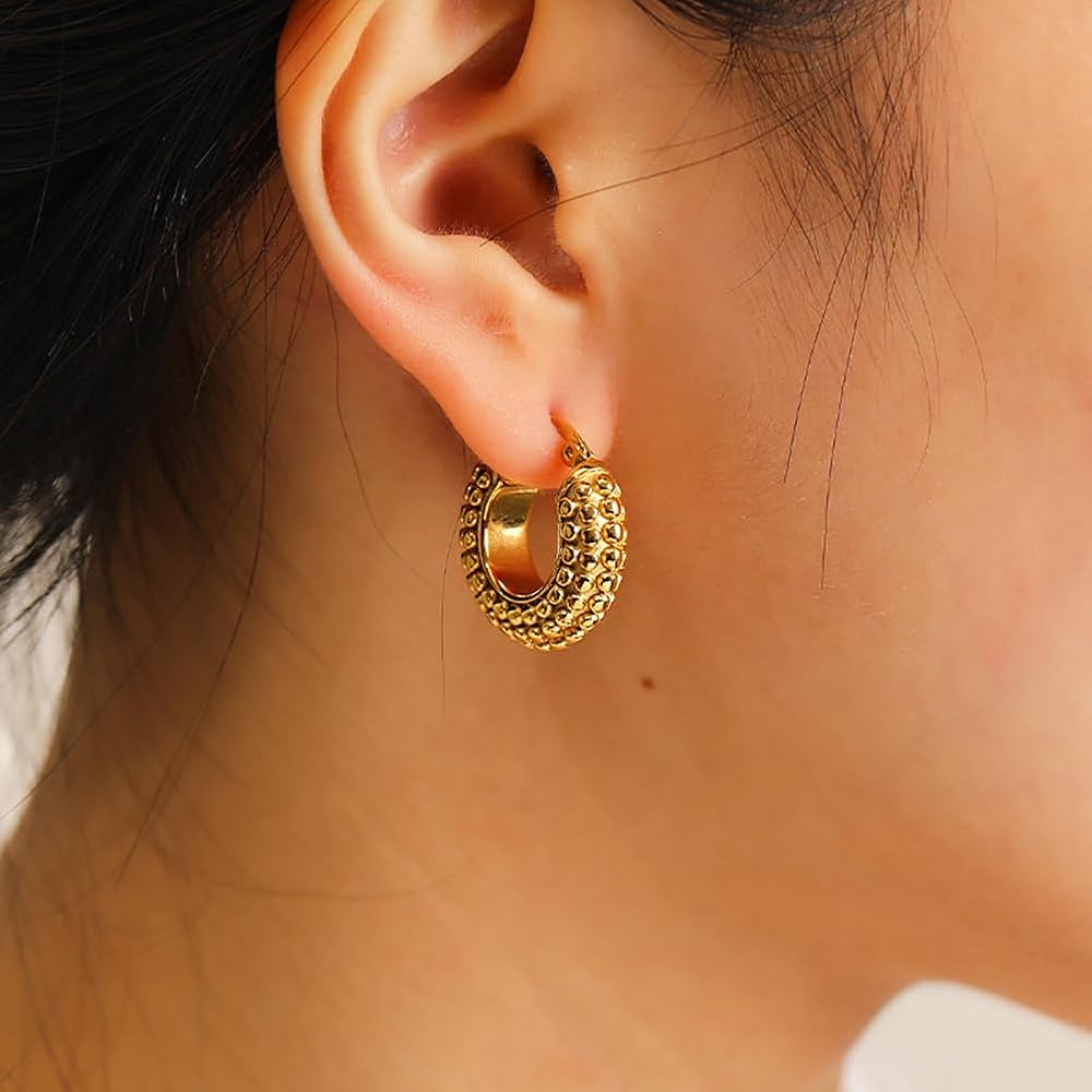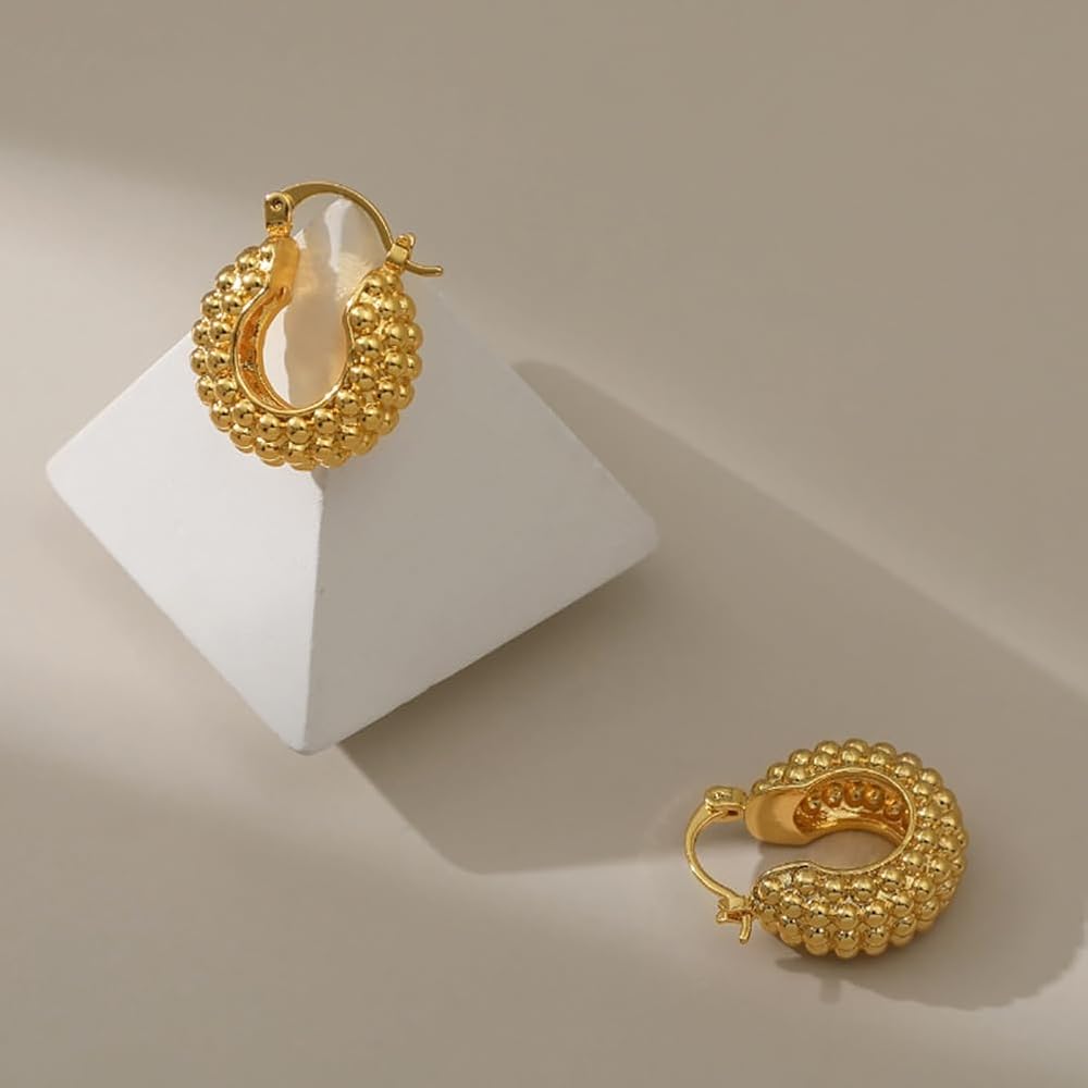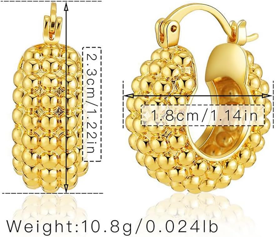 Gold Earrings ——Thick gold geometric earrings can reflect a person's fashion and temperament, like this minimalist with a raised basket shape, add a touch of charm to your overall look all day, you can wear any occasion.