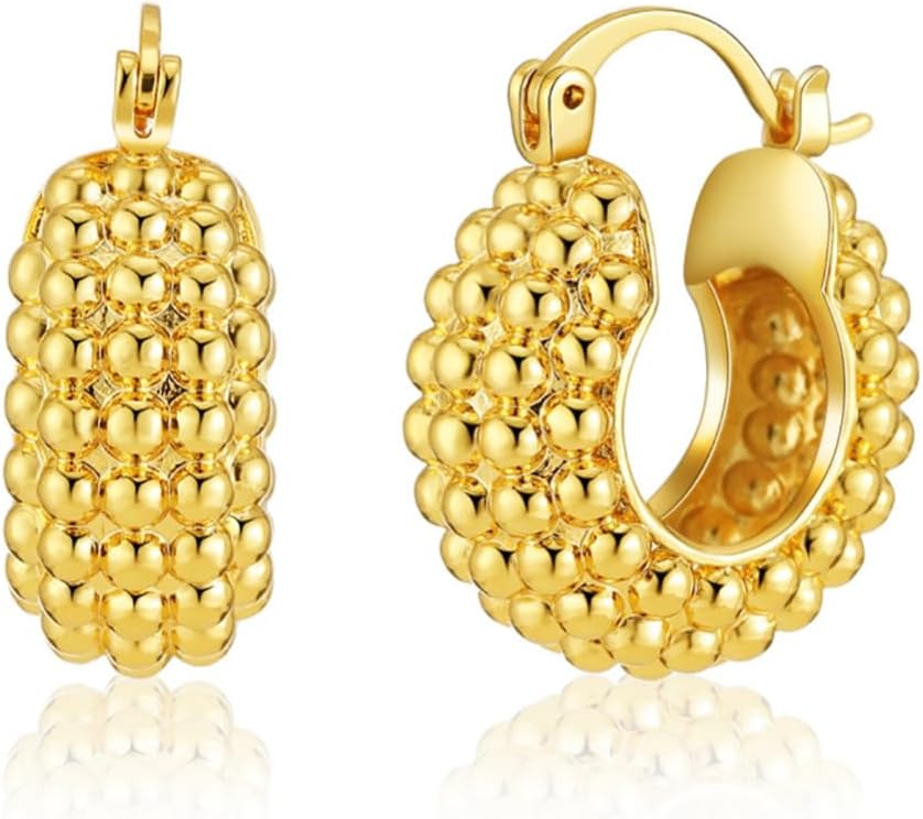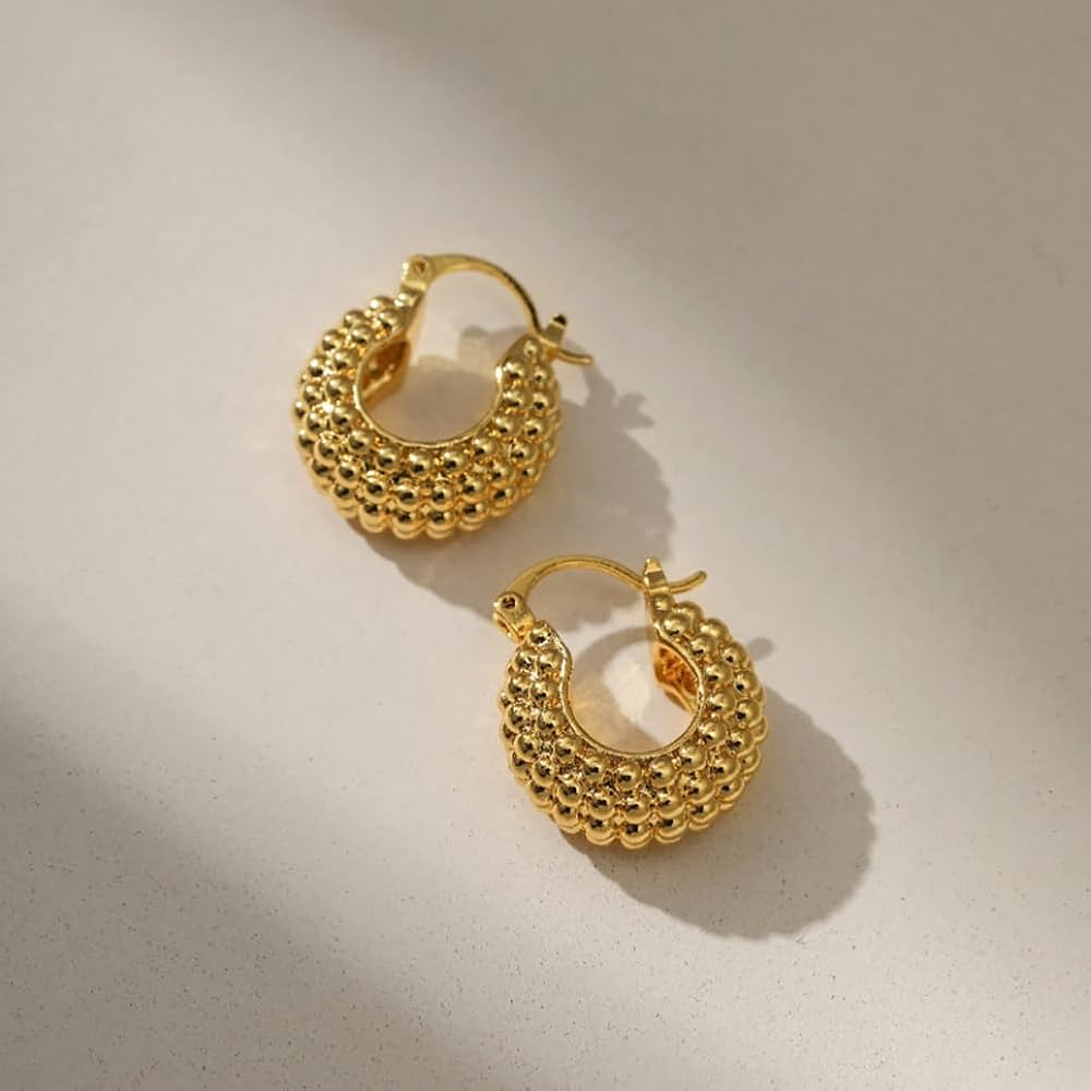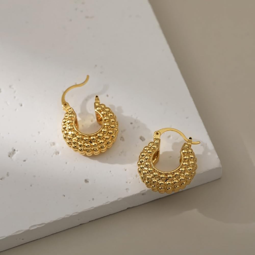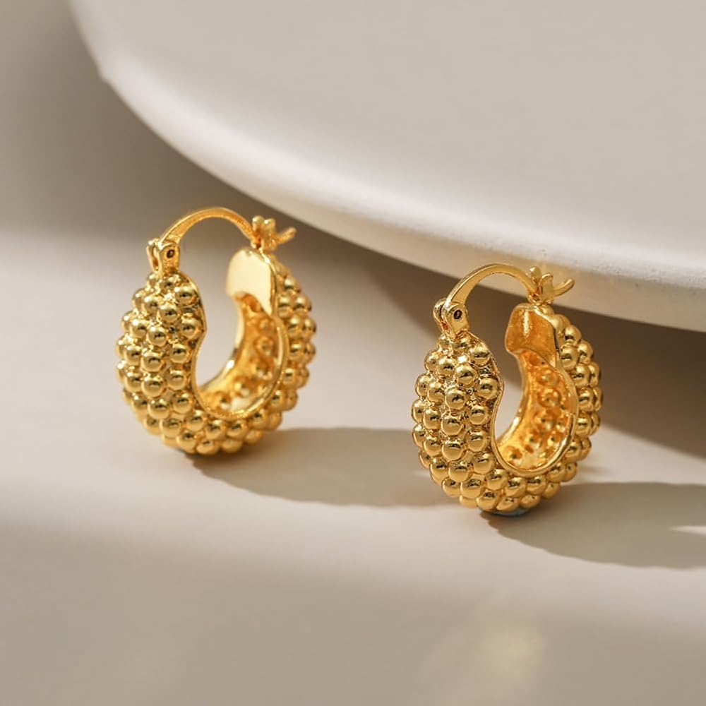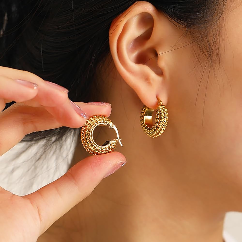 Gold Earrings ——Thick gold geometric earrings can reflect a person's fashion and temperament, like this minimalist with a raised basket shape, add a touch of charm to your overall look all day, you can wear any occasion.