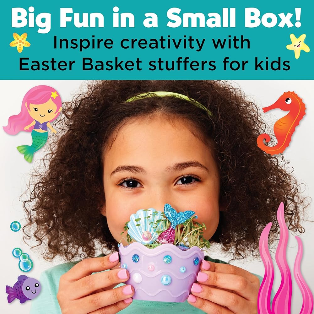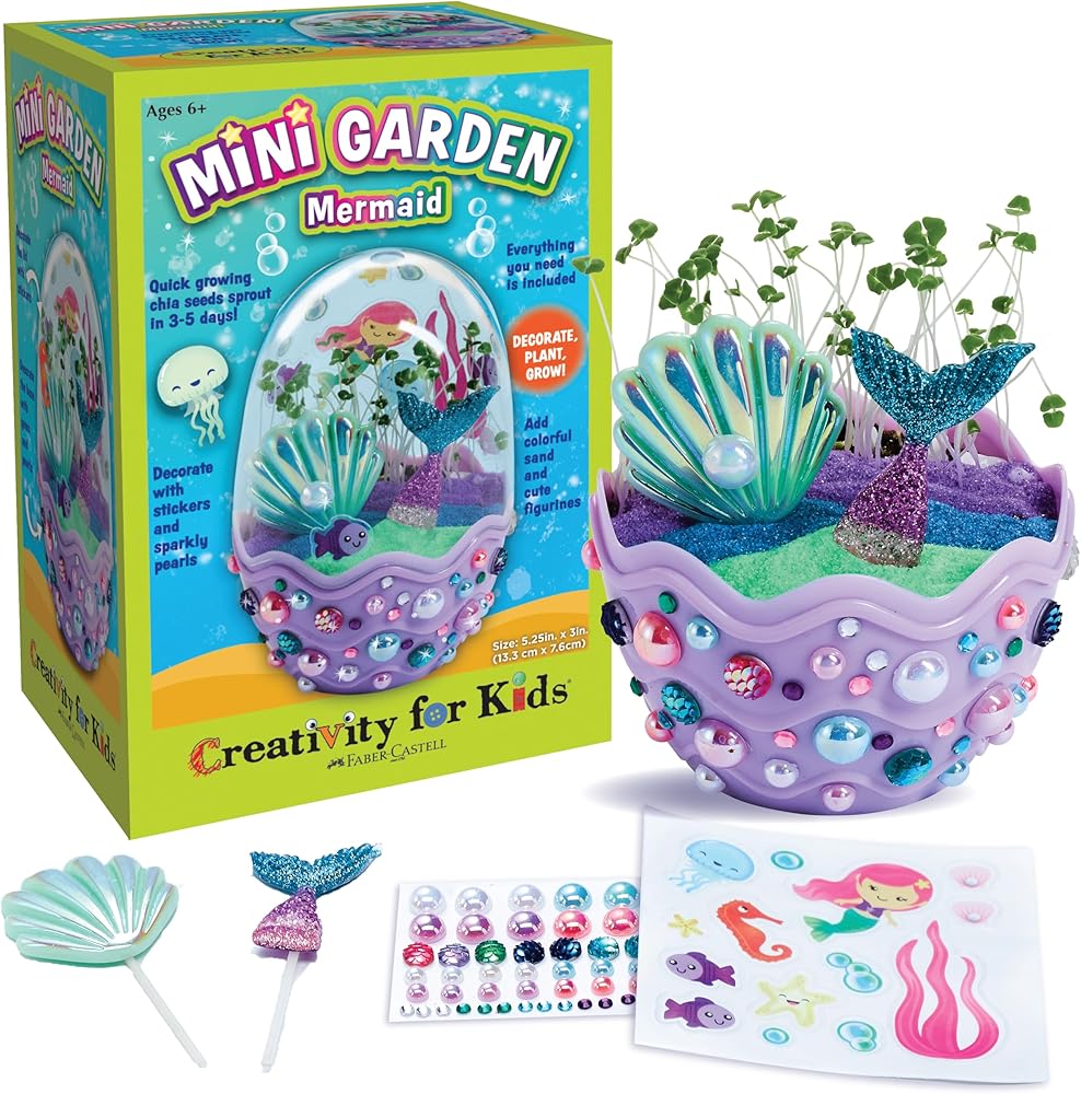 Discover the magic of nature all year long with Creativity for Kids Mini Garden Kit: Pony Terrarium (in an egg-shaped mini garden); the perfect horse toy and an incredible 6 year old girl gifts. Indoor container gardening for kids is a unique, fun experience that combines both arts and crafts with science (STEAM) as your child creates their own mini ecosystem. Perfect for beginners, this pony terrarium kit for kids features quick-growing chia seeds that sprout within 3-5 days, add water for a fun science activity! Our guaranteed-to-grow terrarium kit means a green thumb for all! Everything you need to decorate, plant, and grow your own pony garden toy is included, just add water. The complete gardening activity and girls toy for ages 6-8 includes potting mix, quick-growing chia seeds, pony and pony-themed stickers, dimensional accents, fun minis (2 ponies), and decorative sand. Potting mix is vermiculite, and all seeds are from and packaged in the USA. Mini pony gardens make the perfect stocking stuffer for kids girl gifts. This special craft for girls makes the perfect addition as an Easter Basket Stuffer for girls ages 6-7+, small gifts for kids, Spring crafts, birthday gift ideas, rainy day activities, and so much more! Creativity for Kids Pony Garden girls toys allow for indoor gardening anytime, making them the ultimate horse gift for girls. Let creativity and self-expression lead as you decorate your Pony Mini Garden. Colorful pony stickers and accents bring your garden to life and spark creativity and wonder about the life of the adorable ponies. Growing a mini garden is a special 6 year old girl birthday gift and an opportunity to develop nurturing skills, responsibility, and creative confidence! Since 1971, Creativity for Kids has proudly created unique craft experiences for children to create, explore, and build creative confidence for life. This pony gardening kit for kids features non-toxic materials that are kid-friendly is a recommended crafts for girls ages 6-8+. For best results, do not put your terrarium in direct sunlight. The completed pony garden horse gifts for girls measure 5.25” h x 3” w.