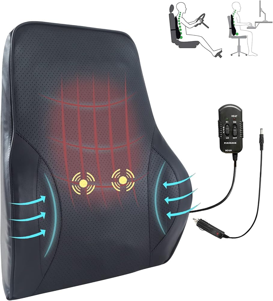 تطبيق واسع - يمكن استخدام وسادة دعم الظهر في مقعد سيارتك. أيضًا، يمكن استخدام وسادة الظهر الداعمة لأسفل الظهر لكرسي المنزل أو المكتب مع محول تيار متردد إلى تيار مستمر (غير متضمن).