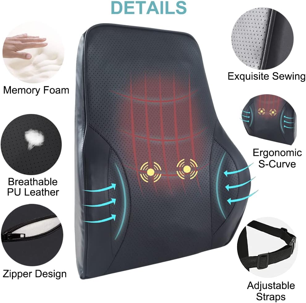 وظيفة الاهتزاز - تأتي الوسادة القطنية مع محركين هزازين، مما يمكن أن يخفف من التعب، ويخفف التوتر ويريح العضلات المتوترة الناجمة عن العمل لفترة طويلة، أو القيادة، أو الرحلات الطويلة.
