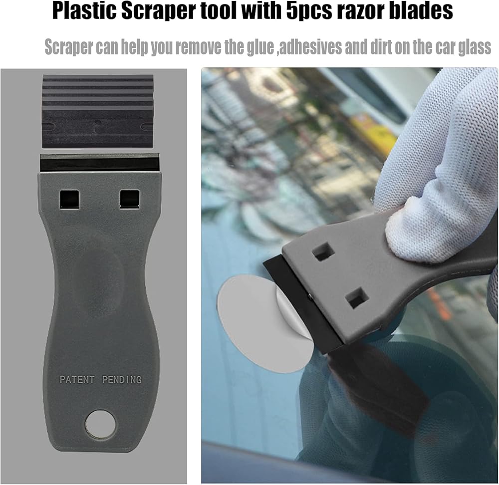 أداة مكشطة بلاستيكية مع 5 شفرات حلاقة إضافية: تستخدم لإزالة الملصقات والملصقات والملصقات من السيارة، سهلة إزالة الفينيل والحطام والشارات والعلامات والغراء والملصقات والمواد اللاصقة والملصقات والشحوم وطلاء الزجاج والمينا والسيراميك والبلاط والمعادن والأسطح المختلفة الأخرى.