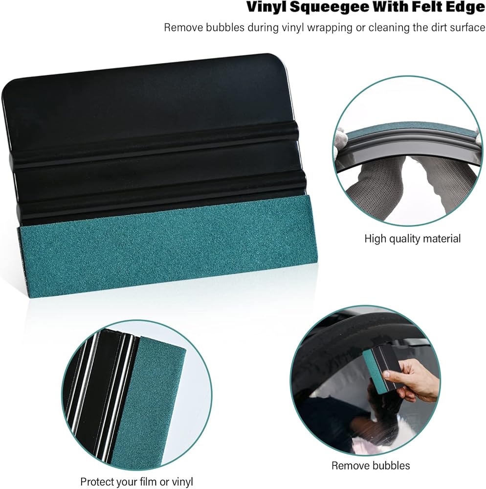 ممسحة حافة اللباد للفينيل: ممسحة حافة اللباد المتينة رائعة لتغليف الفينيل في السيارة، وإزالة الفقاعات بشكل فعال وتقليل الخدوش وتقليل الضرر، وكشط الفقاعات أسفل الفيلم، ومنع الزجاج وطلاء السيارة والفيلم.