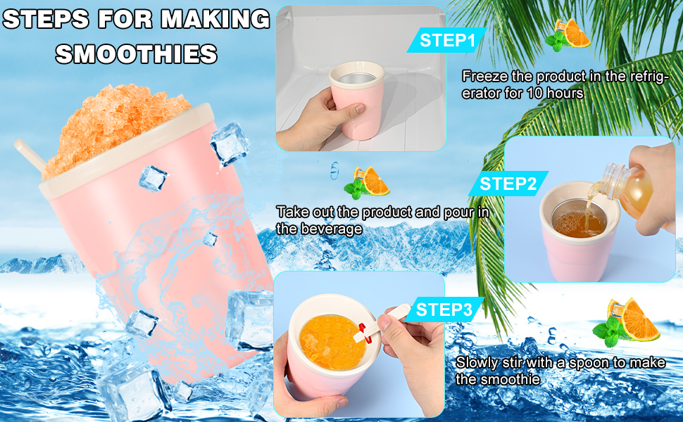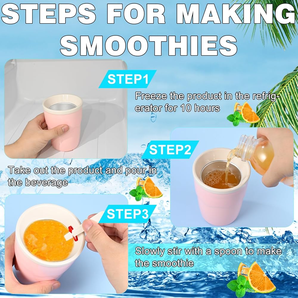 🍧خيارات مشروبات متعددة الاستخدامات: أكواب صانع سلوشي تعمل مع مجموعة متنوعة من المشروبات، بما في ذلك الصودا وعصير البرتقال والسبرايت والمزيد. يمكنك أيضًا إضافة الفاكهة أو الشراب إلى مشروبك قبل تجميده لتجربة نكهات مختلفة. استمتع بالمشروبات المنعشة والصحية في أي وقت وفي أي مكان!