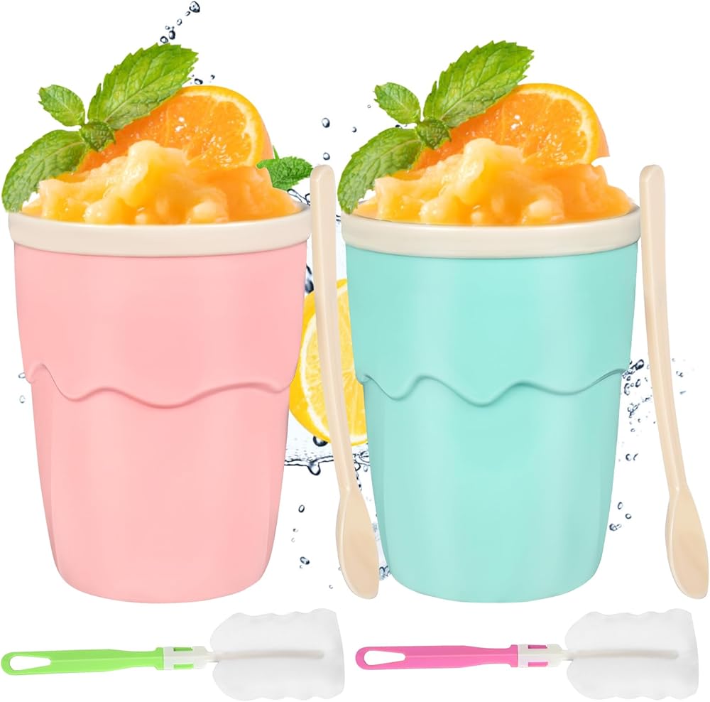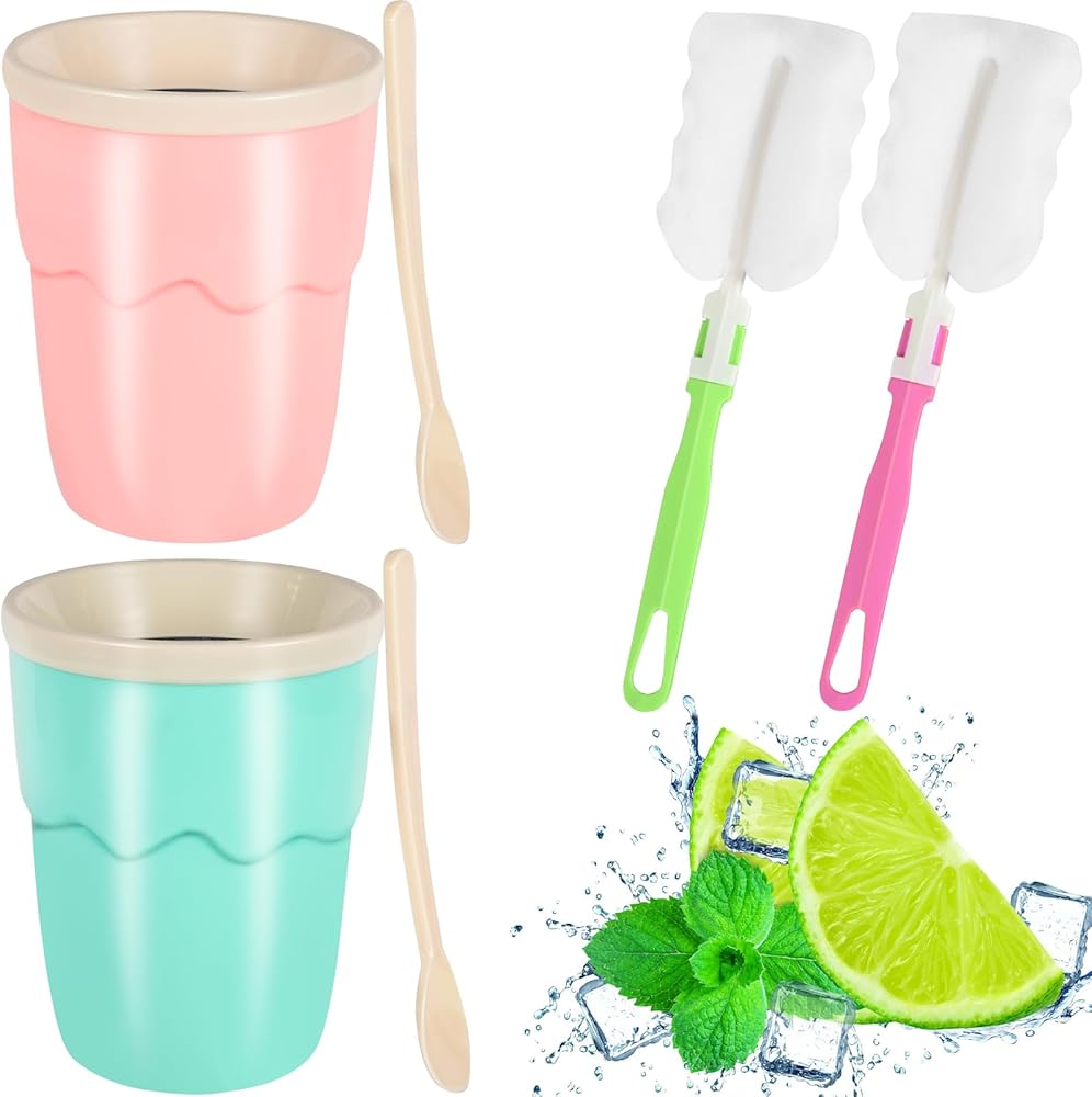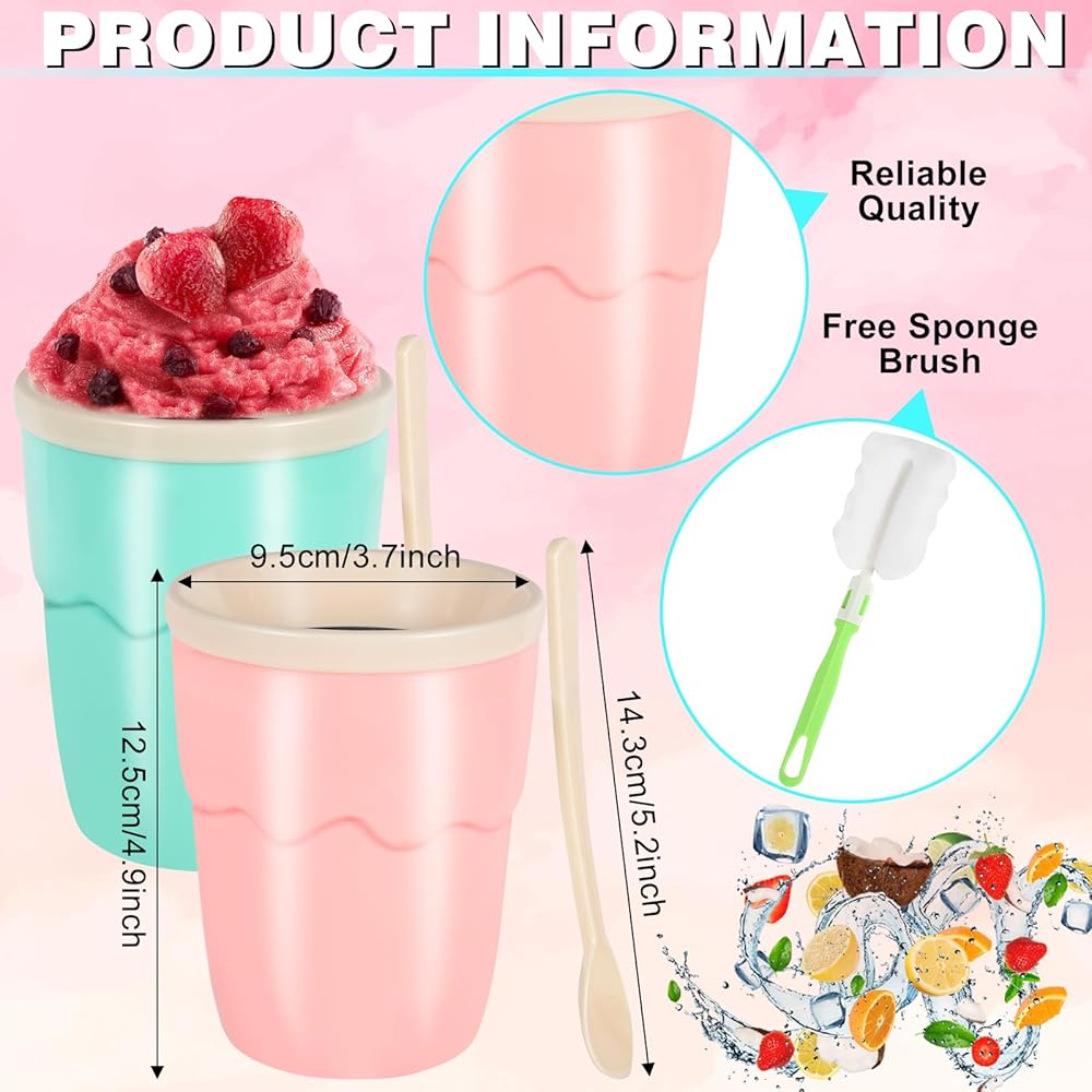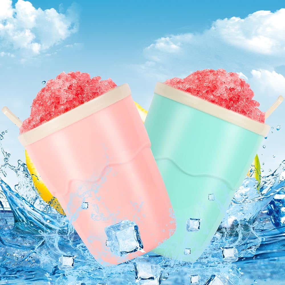 🍧أكواب صانعة السلاشي: تأتي هذه المجموعة من أكواب صانعة السلاشي باللون الوردي والأخضر، مثالية لإضافة اللون إلى مطبخك أو المناسبات الخارجية. تبلغ سعة كل كوب 6.7 أونصة مع سعة فعلية قابلة للاستخدام تبلغ 6 أونصات، مما يجعلها مثالية للشرب لمرة واحدة.