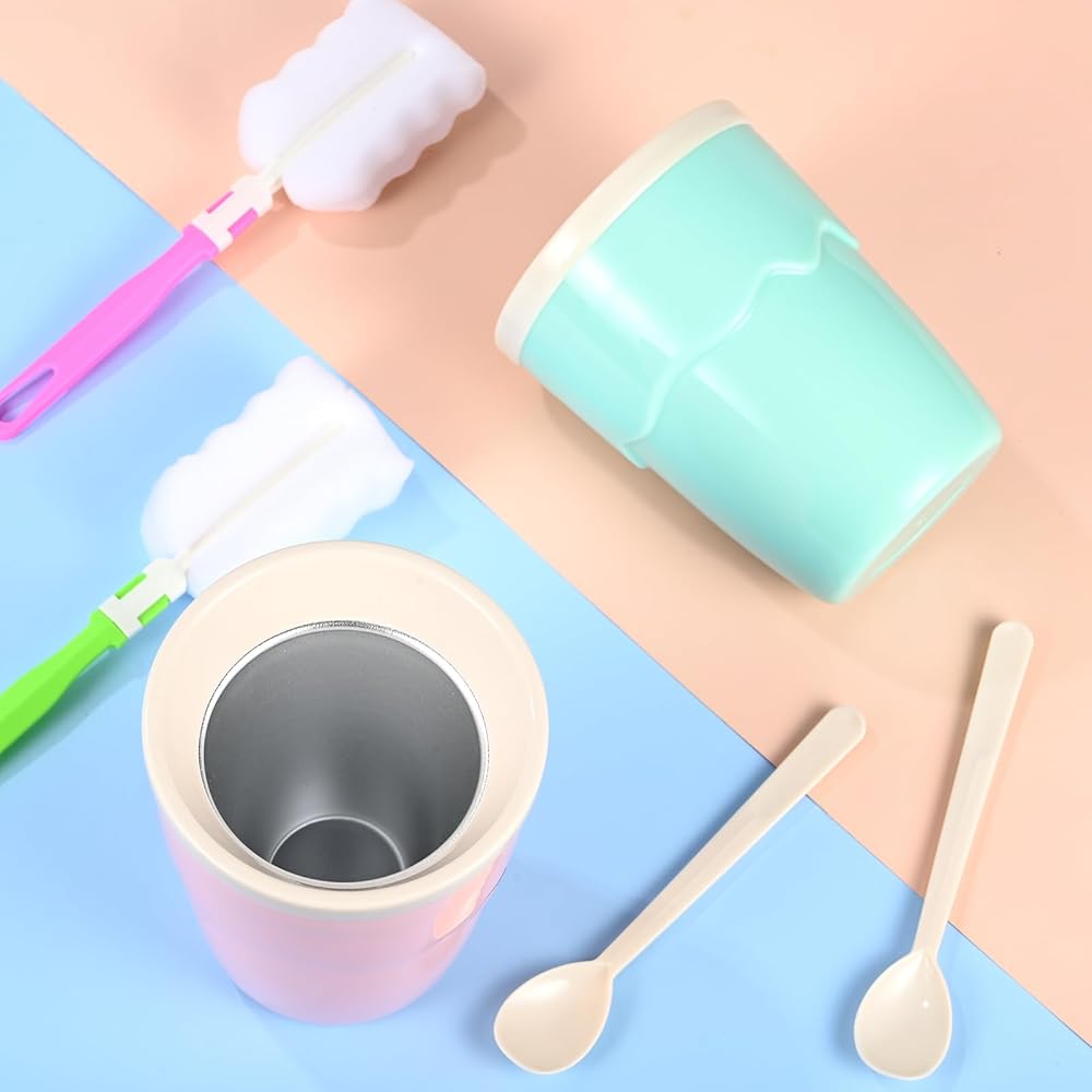 🍧تصميم سهل الاستخدام: تم تصميم أكواب صانع سلوشي مع وضع الراحة في الاعتبار. تأتي مع ملعقة يدوية لتحريك وتقديم المشروبات، كما أن الجزء الخارجي المتين من مادة البولي بروبيلين والجزء الداخلي من الألومنيوم يجعلها سهلة الإمساك والاستخدام.
