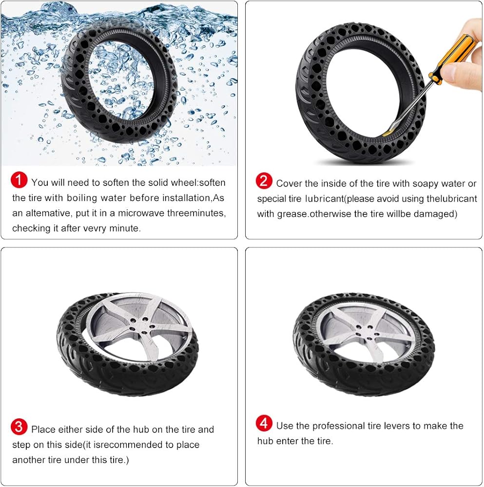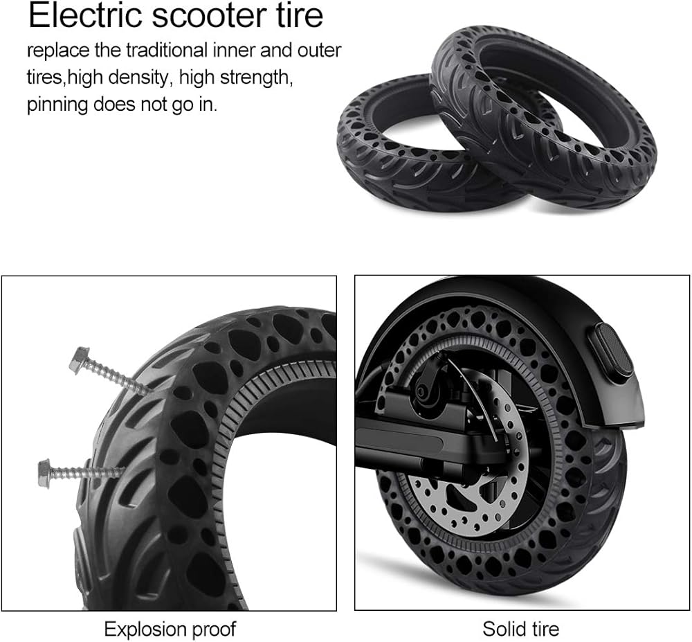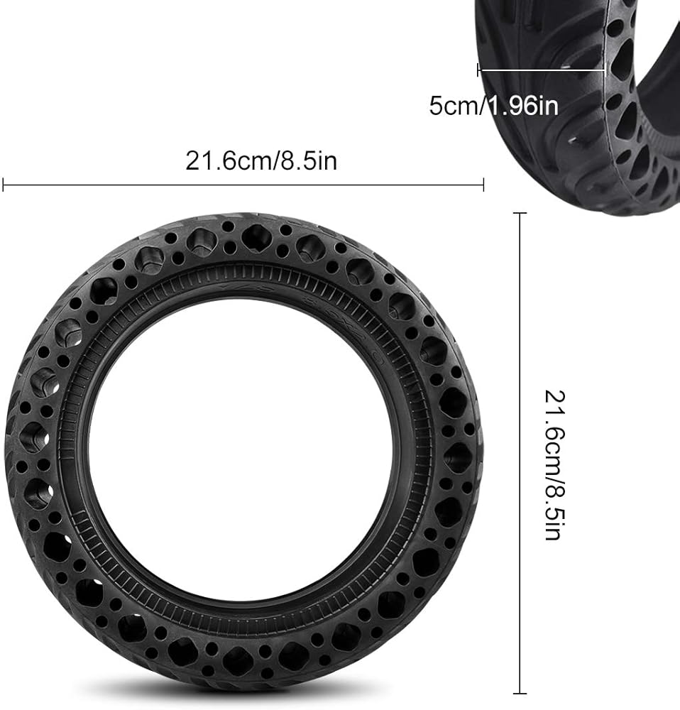 The wheel has outstanding performance in terms of anti-abrasion, anti-chemical attack, high elasticity and excellent tear resistance. Due to the anti-slip pattern, it can be used on snowy and rainy days.The honeycomb solid tires are compatible with for Xiaomi M365 / M365 Pro scooter.There is no longer any need for inner tubes, patch, pump to inflate. It's more practical and durable. With good shock absorption performance, and good seismic Flexible and durable.