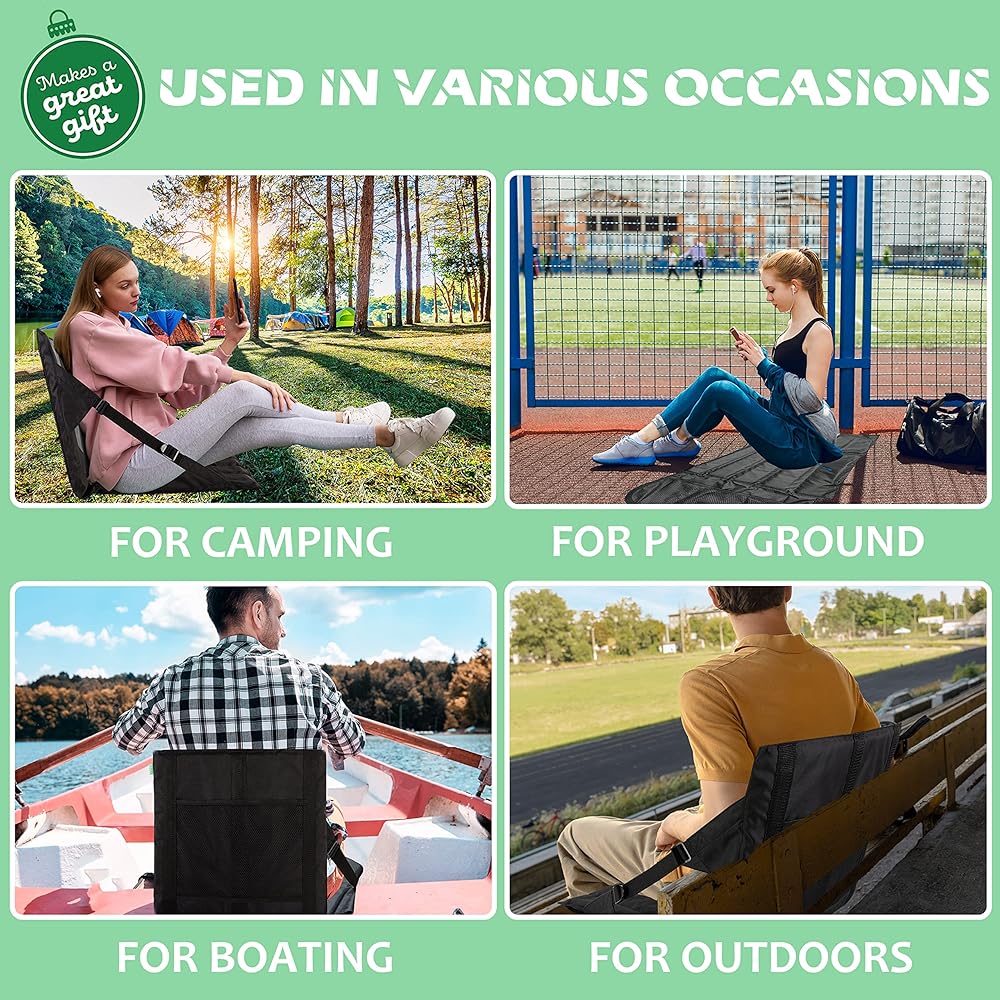 نسيج متين - مقعد الملعب للمدرجات مصنوع من قماش أكسفورد 600D عالي الجودة. والظهر والوسادة المريحة تجعلها مثالية للأنشطة المختلفة مثل مشاهدة الألعاب الرياضية والتخييم وحفلات الحديقة والحفلات الموسيقية الخارجية والسفر وما إلى ذلك.