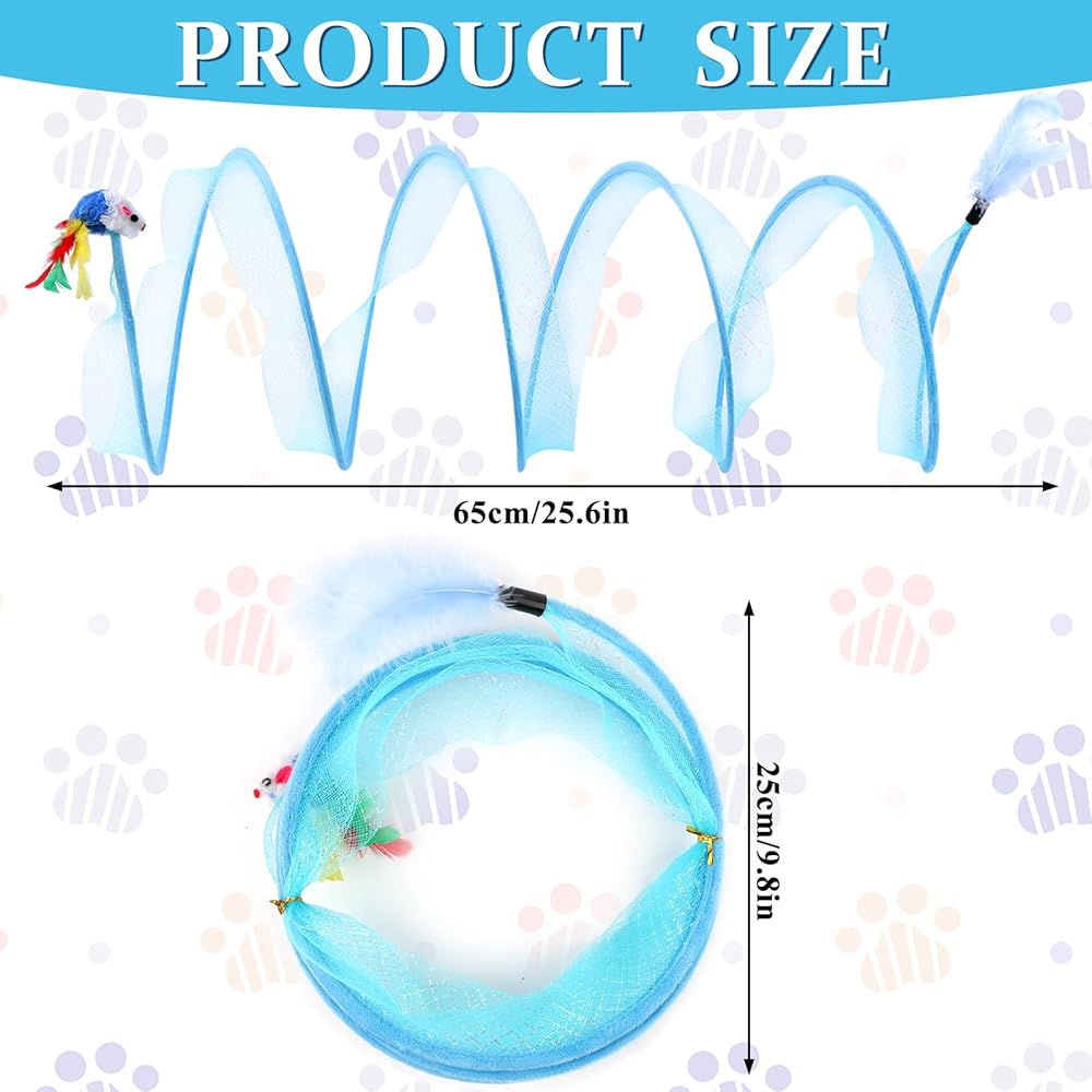 قطعتان من لعبة نفق القطط التفاعلية المطوية لنفق القطط الربيعي لتمرين القطط في الأماكن المغلقة، سرير نفق القطط للقطط الصغيرة، أداة خفق نفق القطط مع ألعاب ماوس ريشة، أزرق وأخضر