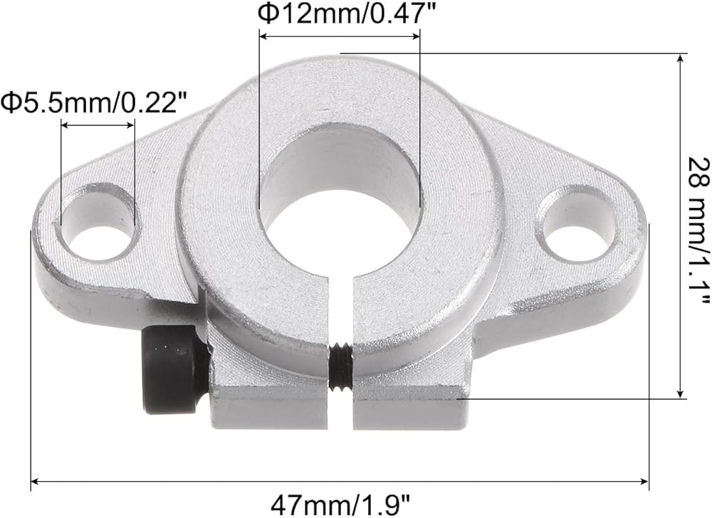 Model: SHF12; Shaft Diameter: 12mm/0.47inch; Mount Hole Dia.: 5.5mm/0.22inch; Overall Size: 47mm x 28 mm/1.85 inch x 1.1inch (Length*Outer Diameter)