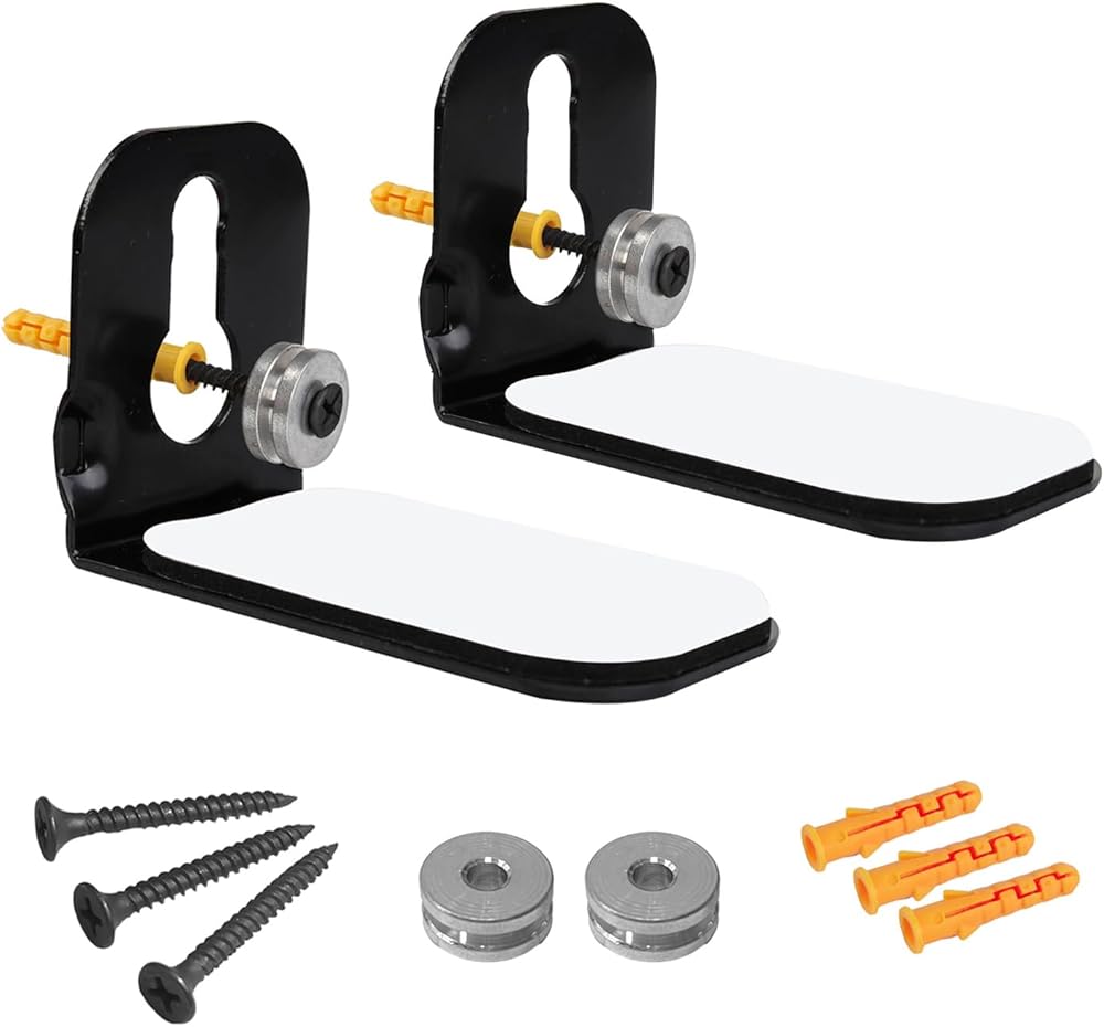 Package Includes: 2 x Sound bar Wall Mount Bracket, 2x Metal Ring, 3 x Long Screw, 3 x Anchor, 2 x Sticky Anti-slip Strips