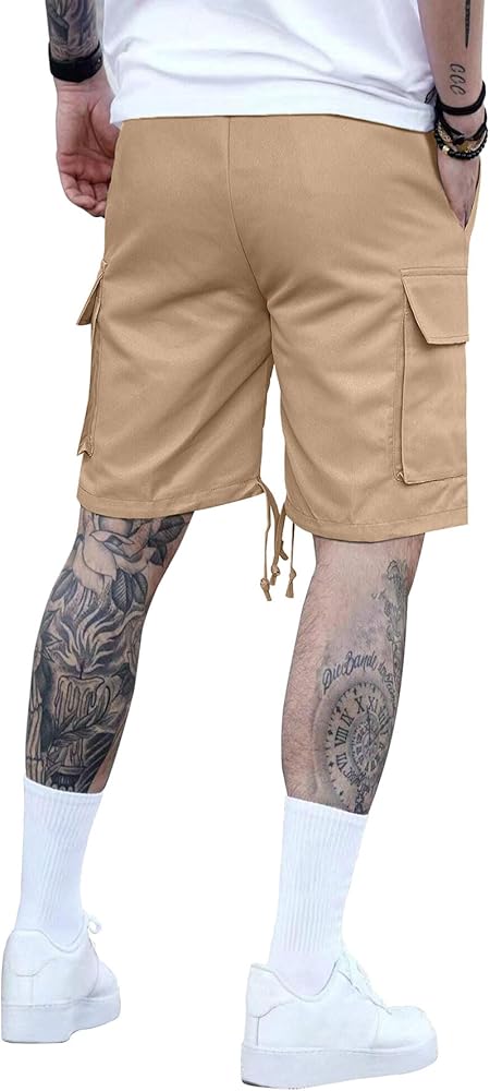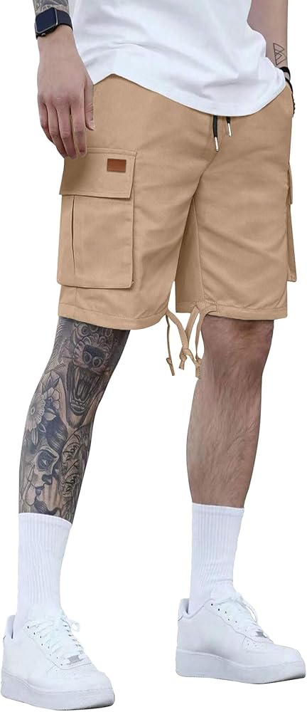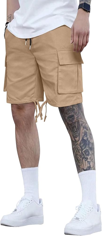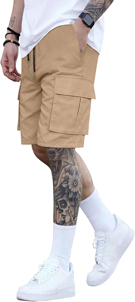 شورت رجالي من HUNGSON بخصر مطاطي مريح مصنوع من القطن كاجوال وخفيف الوزن للعمل مع جيوب متعددة
