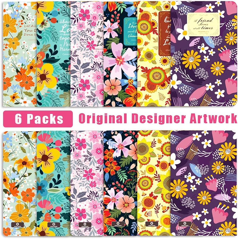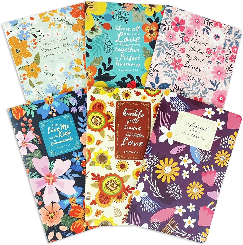 ANZON MORIES 6 BACKS FLORAL NOTERS مع آيات الكتاب المقدس اقتباس QUOTE 80 صفحة-40 صفائح مبطنة ، 5 "× 8" منصة كتابة الكتب المذكرة الصغيرة ، مجموعة الفن المسيحي ، مجلة الكتاب المقدس ، مخيط ملزمة ،