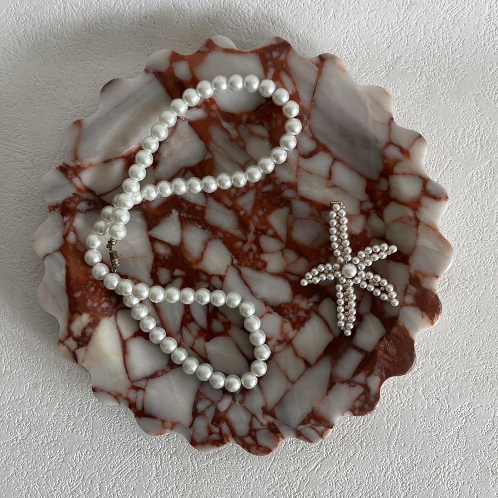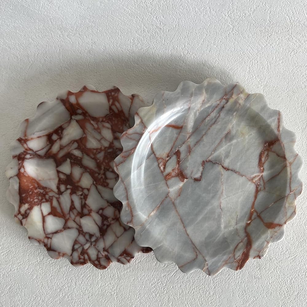 متعددة الأغراض: يمكن استخدام صينية الزينة الرخامية هذه كصينية تقديم، أو صينية مجوهرات، أو صينية عطور، أو صينية مكياج، أو صينية حلية أو حتى صينية شاي القهوة. كما يتم وضعها على الطاولة كزينة، مما يضفي إحساسًا بالجودة.